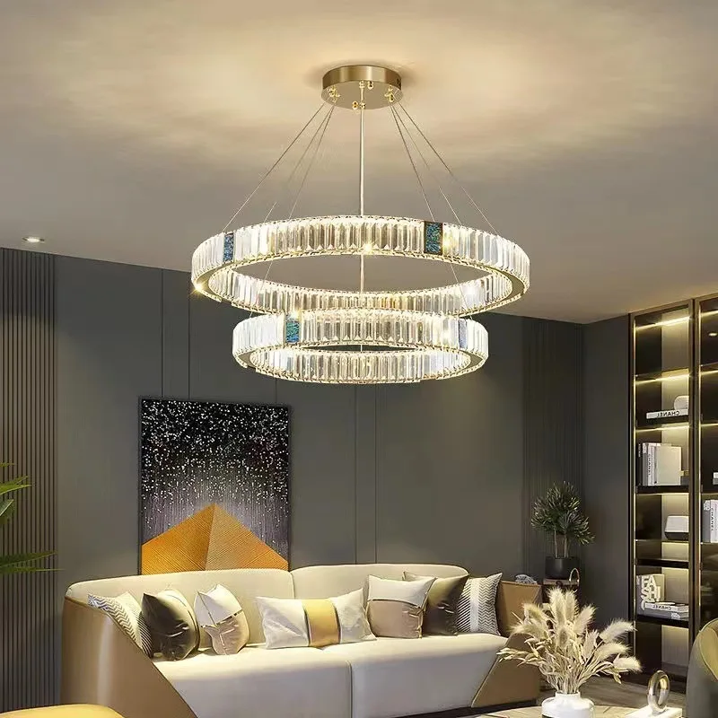Circle Creative Round Led Pendant Light Living Dining Room Dimmable Crystal Ring Chandelier