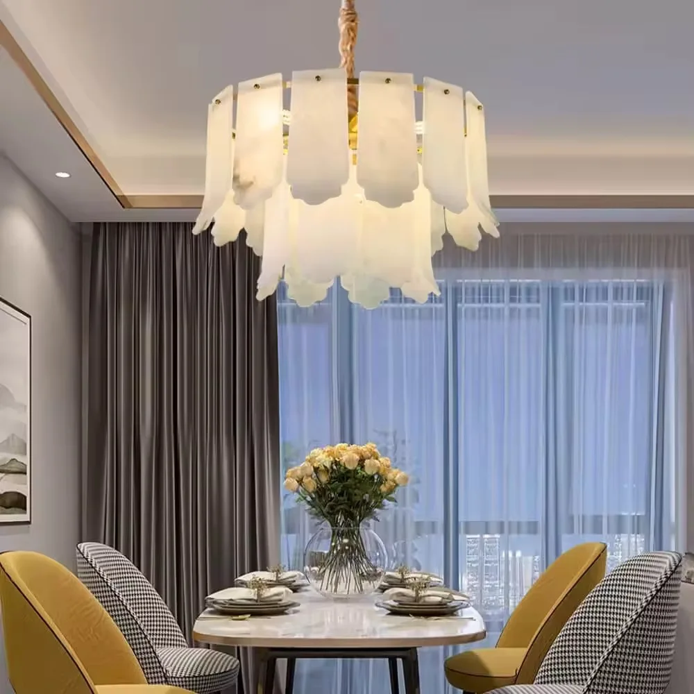 Designer Natural Marble Full Copper Chandelier Luxury Postmodern Creative Personality Simple Villa Dining Room Adjustable Height