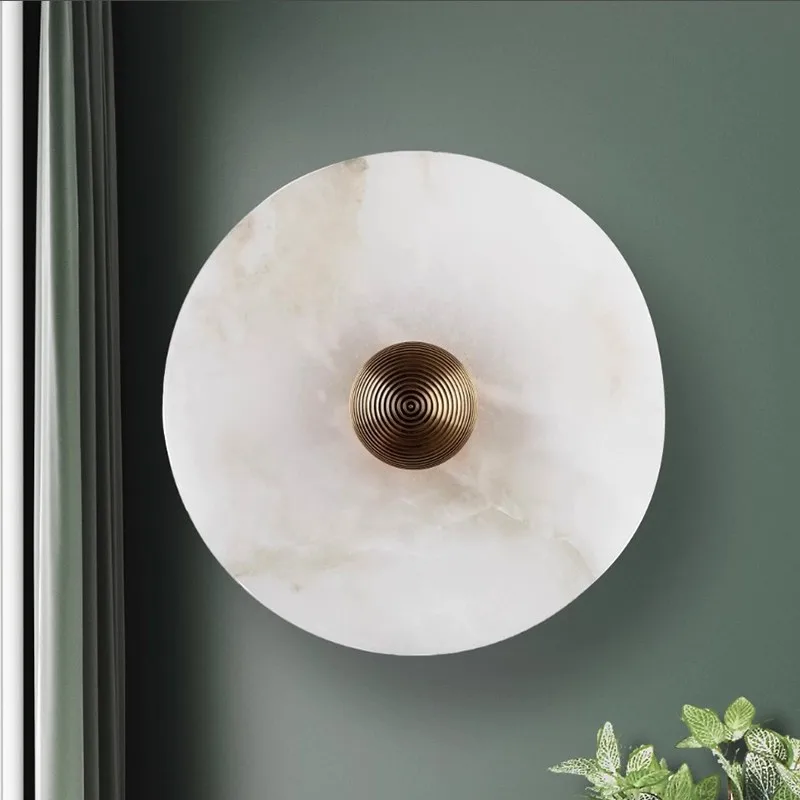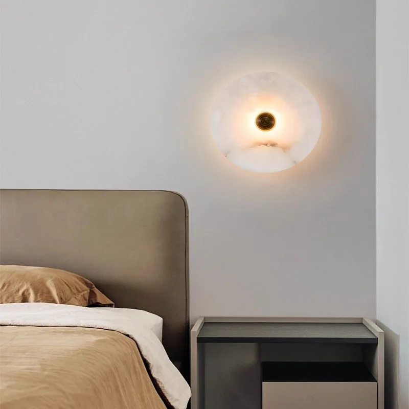 Modern Minimalist Round LED Wall Lamp Alabaster Indoor Decorative Bedside with Marble Shade for Living Room