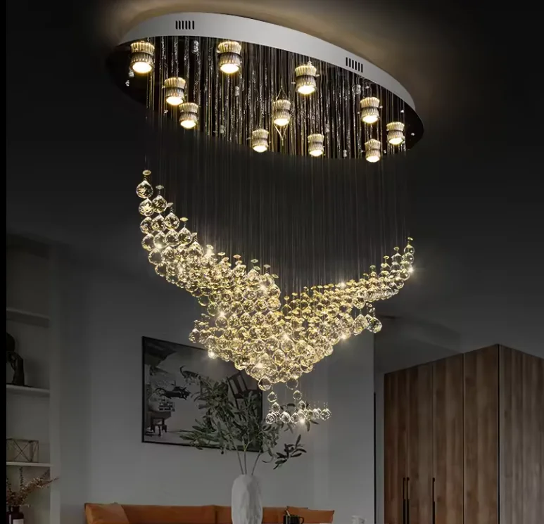 Zeal Lighting Long Stairwell Hanging Pendant Light Staircase Villa Duplex Stair High Ceiling Crystal Chandelier