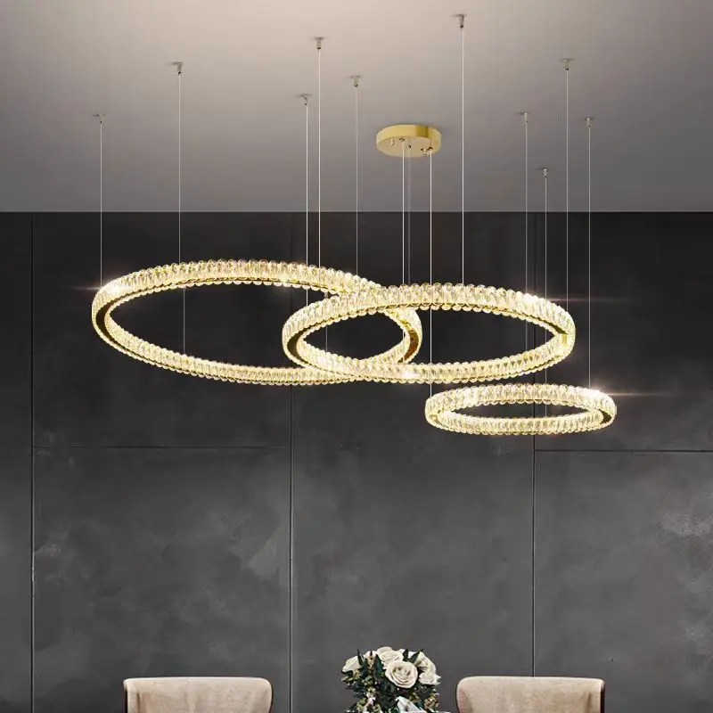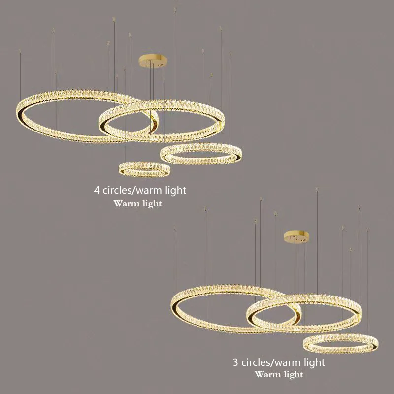 Custom Hotel Large Ring Chandeliers Ceiling Luxury Hanging Pendant Lights Led Staircase Modern Crystal Chandelier