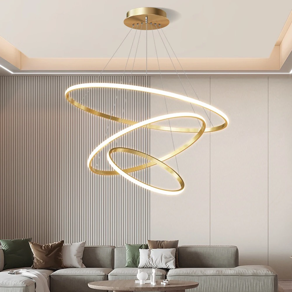 Modern Pendant Lamp Hotel Living Room Luxury Gold Chandelier Acrylic Circle Linea Ceiling Round Modern Led Ring Pendant Light