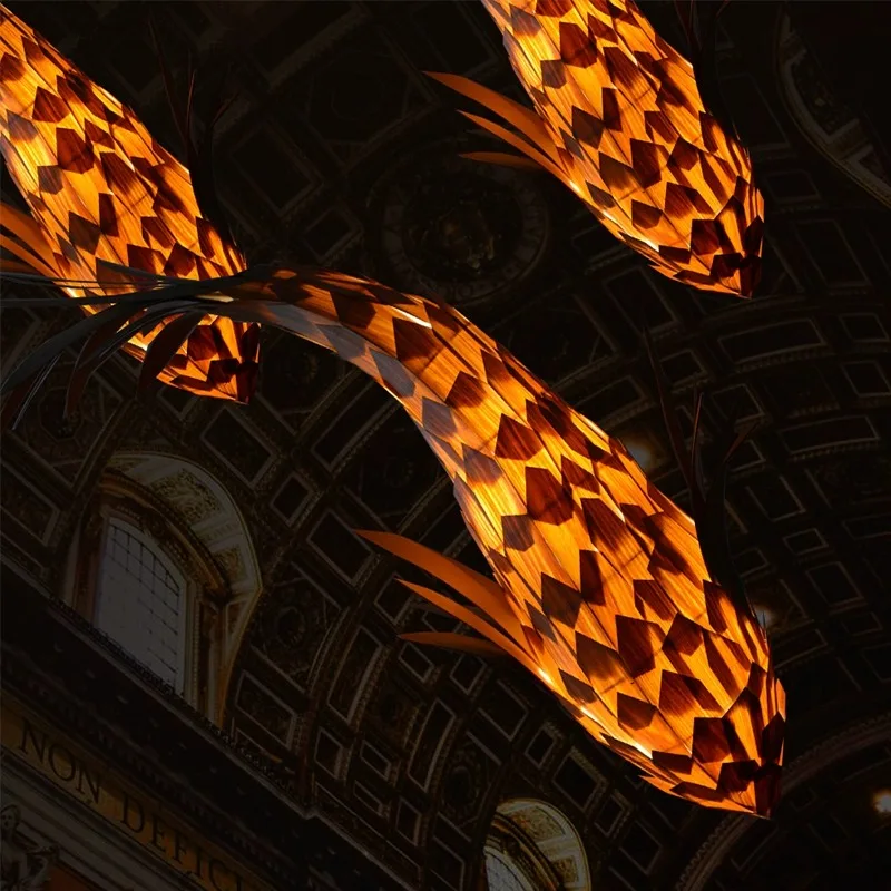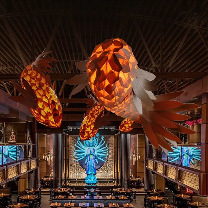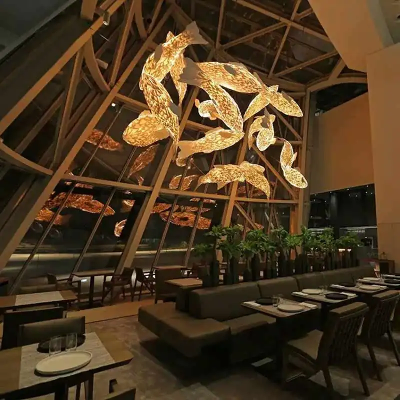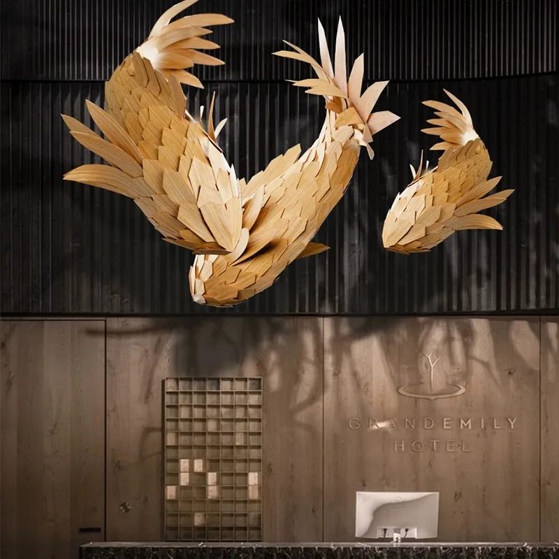 Custom Large Indoor LED Chandelier Unique Fish Lighting Design for Hotel Lobby Staircase Custom Wooden Project Middle for Indoor