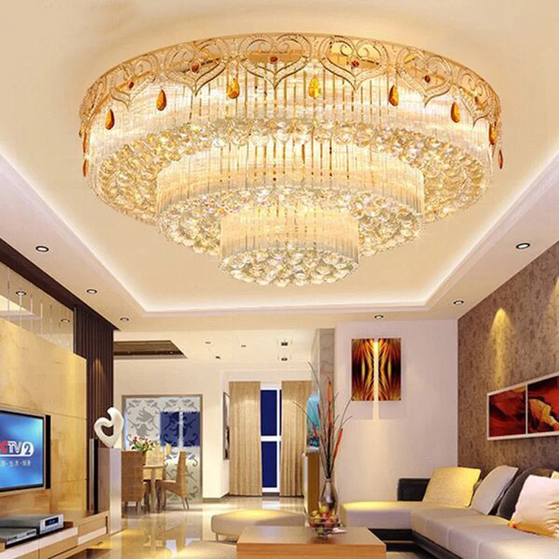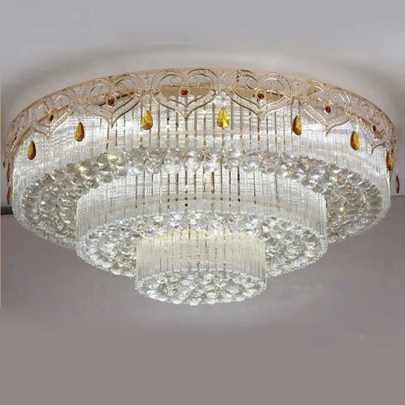 Luxury Multi-Story Surface Mounted Room Round Ceiling Lamp K9 Crystal Ceiling Lights with Metal Base