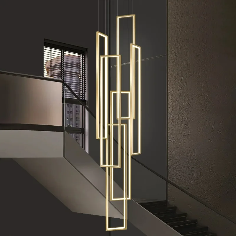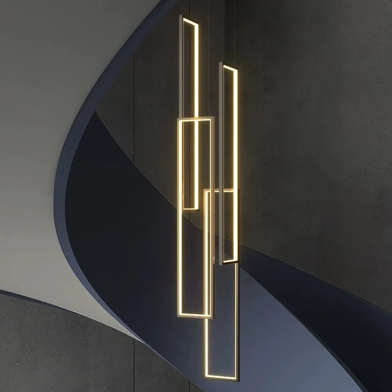 Modern Minimalist Style Interior Decoration High Ceiling Chandelier Hotel Lobby Staircase Villa LED Long Chandelier