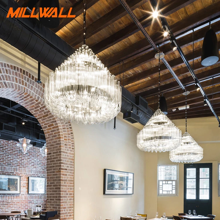 European Style Custom Hotel Villa Club Living Room Staircase Interior Decorative Luxury Round Glass Tubes Chandelier