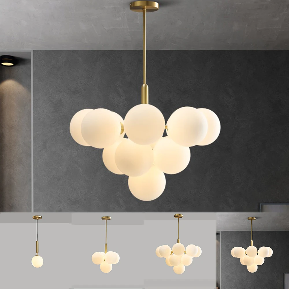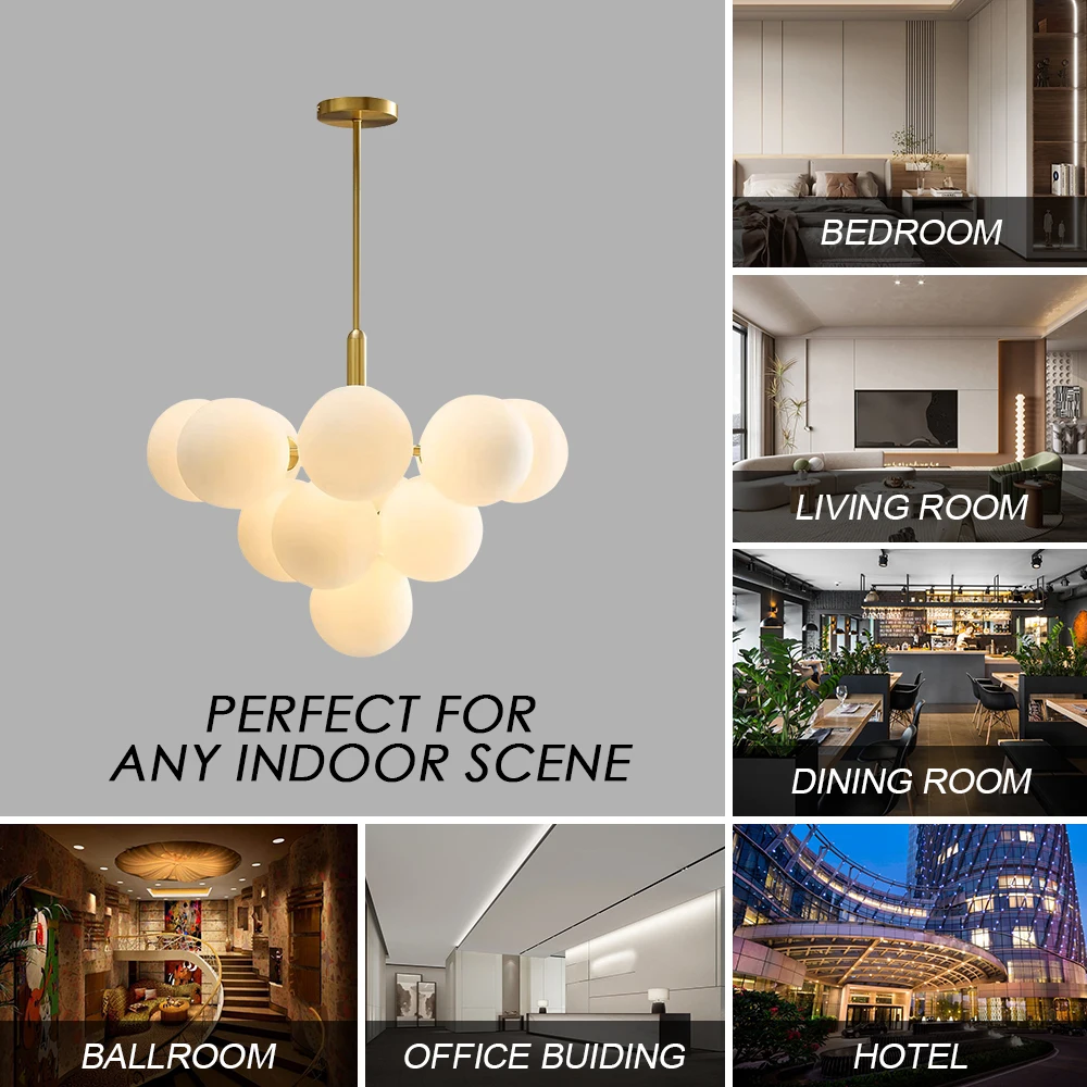 French Country Modern Led Decorative Rectangle Fixture Lamp Home Ceiling Blown Glass Bubble Ball Pendant Light Branch Chandelier
