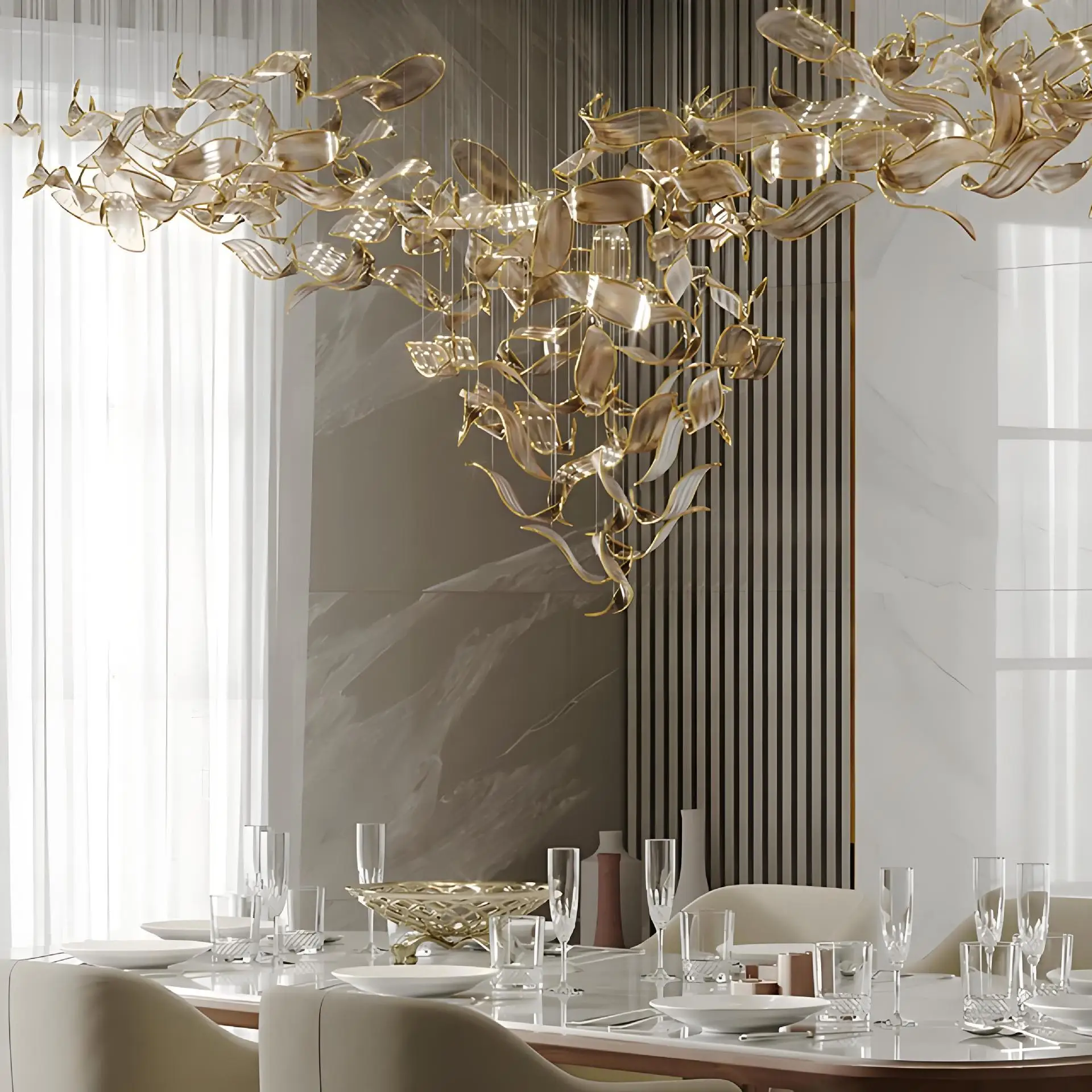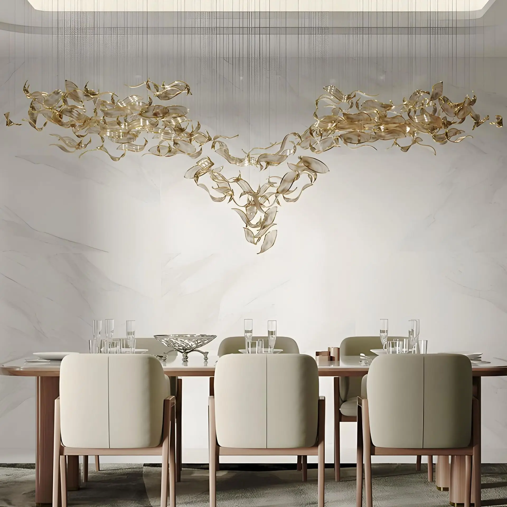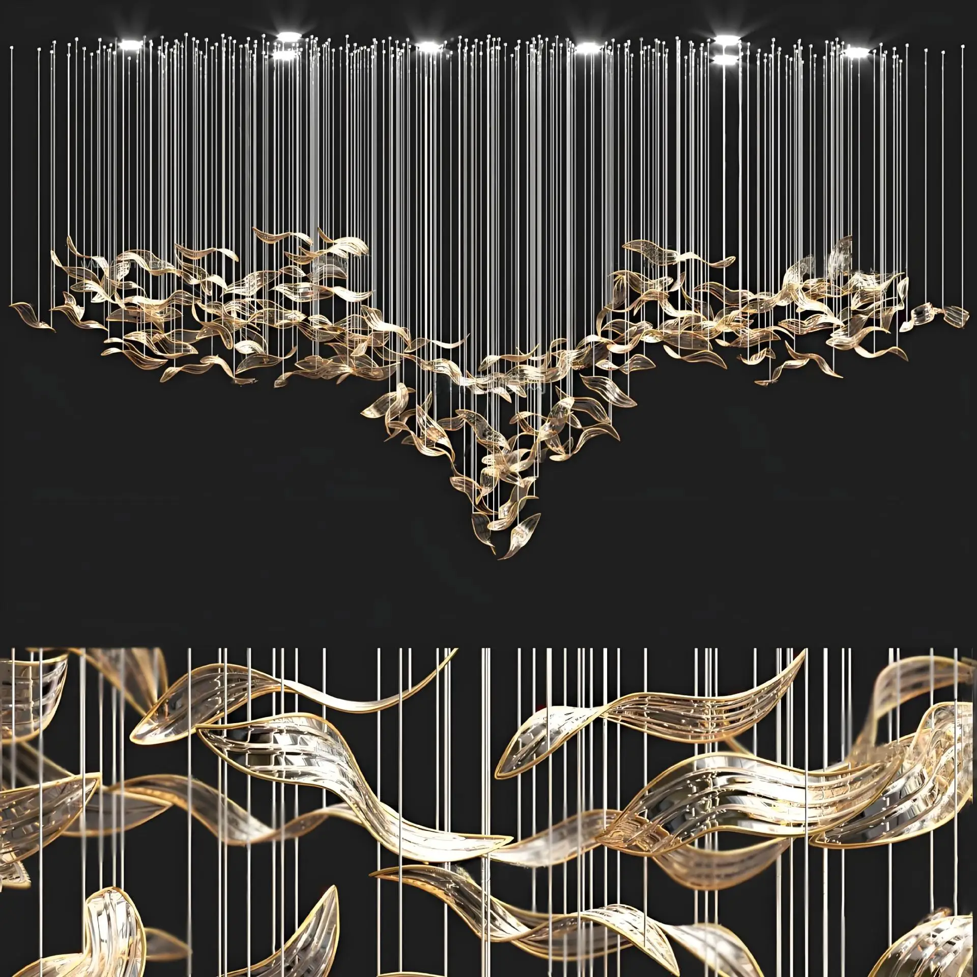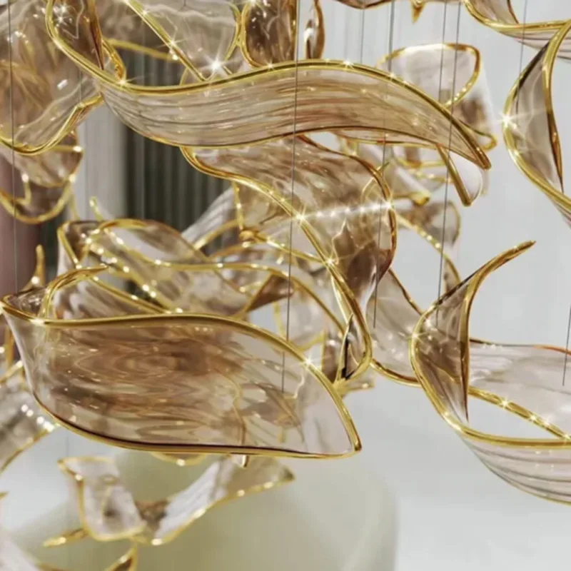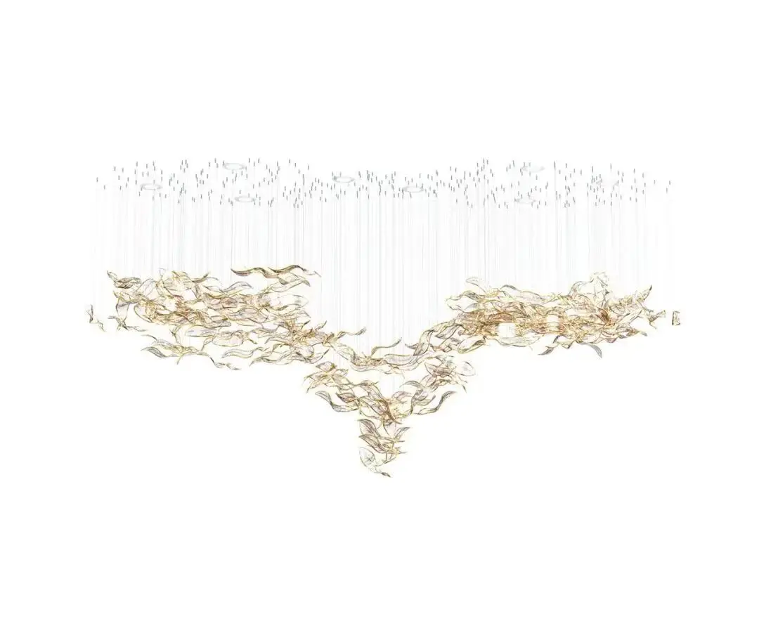 Customized Hotel Lobby Project Large Leaf Shape Pendant Light Shopping Mall Bespoke Glass Chandelier Ceiling Installation