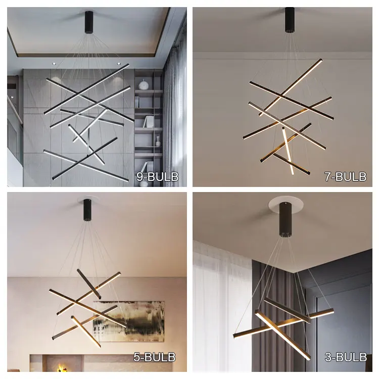 Nordic Villa Home Decor Minimalist Long Steel Hanging Staircase Pendant Lamps Modern Luxury Large LED Stair Chandelier Lighting