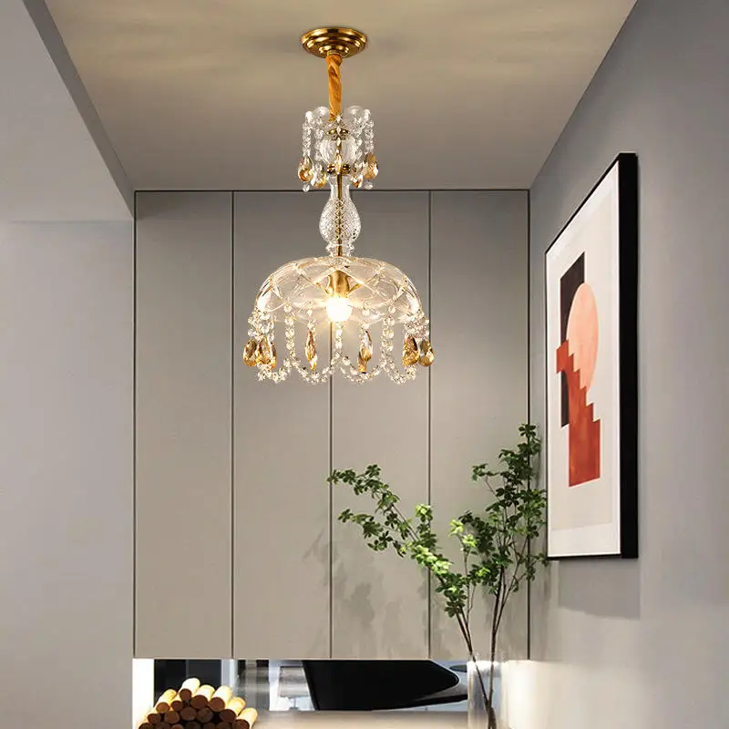 Simple Modern Glass Crystal Hanging Chandelier Bedroom Bedside Hanging Pendant Light for Kitchen