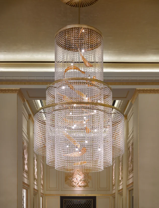 Zeal Lighting Hotel Lobby Hall Decorative Large Hanging Light Customized Long Gold Crystal Elegant Chandelier