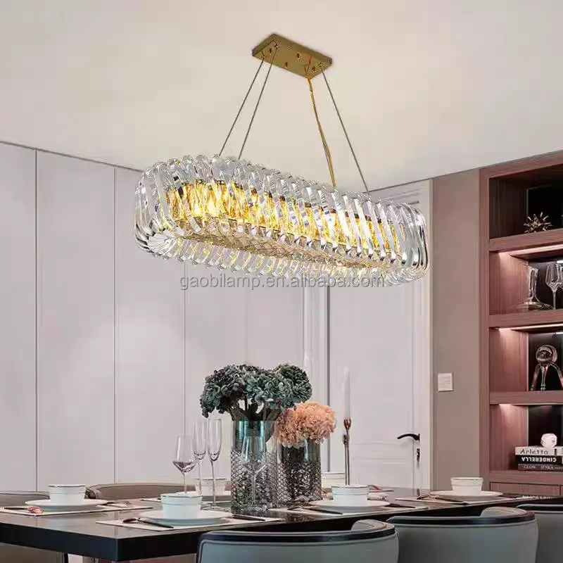Modern Luxury LED Crystal Chandelier German Warehouse Indoor Decorative Pendant Stainless Steel Oval for Restaurant Hanging