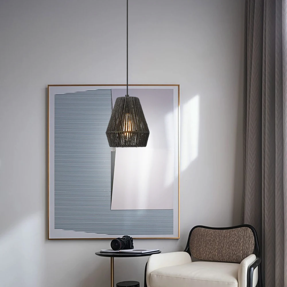 Wabi-Sabi Handcrafted Tassel Macrame Woven Pendant Light Twine Braid Rattan Led Rattan Chandelier