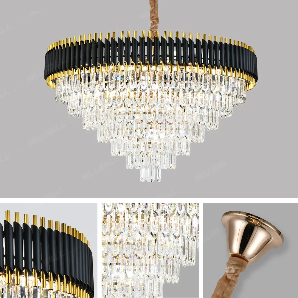 Hotel Restaurant Dining Gold Black Wedding Living Stair Room Large Luxury Ceiling Modern K9 Crystal Pendant Lights Chandelier