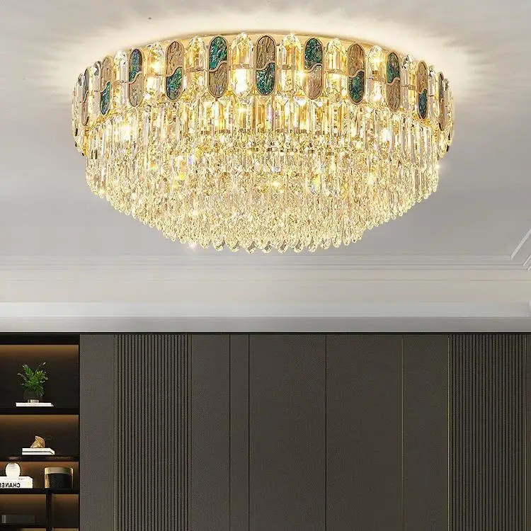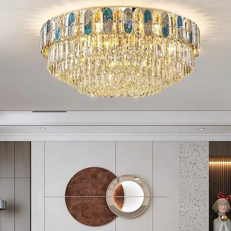 Zeal Lighting Living Room Hotel Modern Luxury Led Round Crystal Ceiling Lights Fixtures with Remote Control
