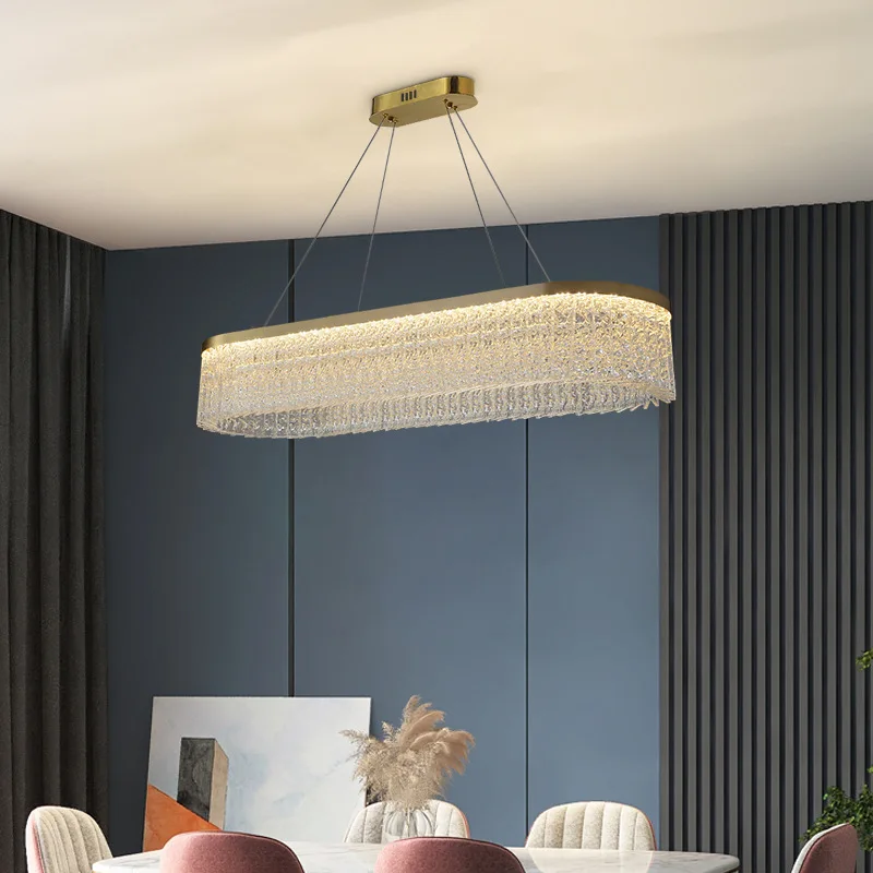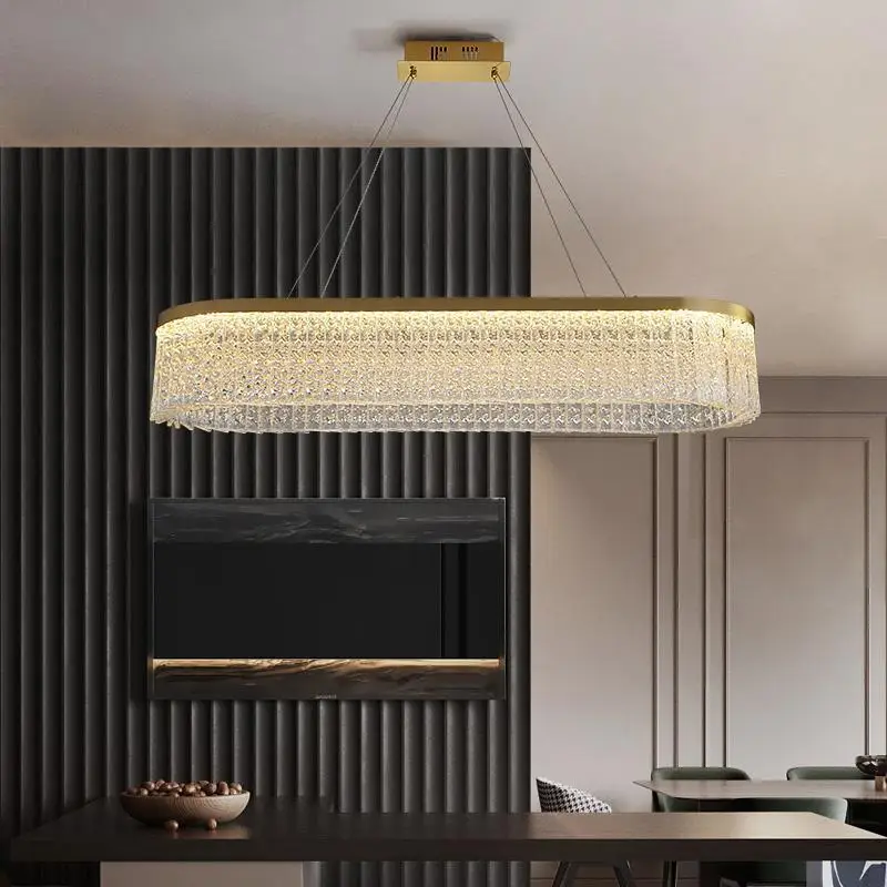 Crystal Chandelier Modern Simple Luxury Rectangular Gold Pendant Water Drop Crystal Light