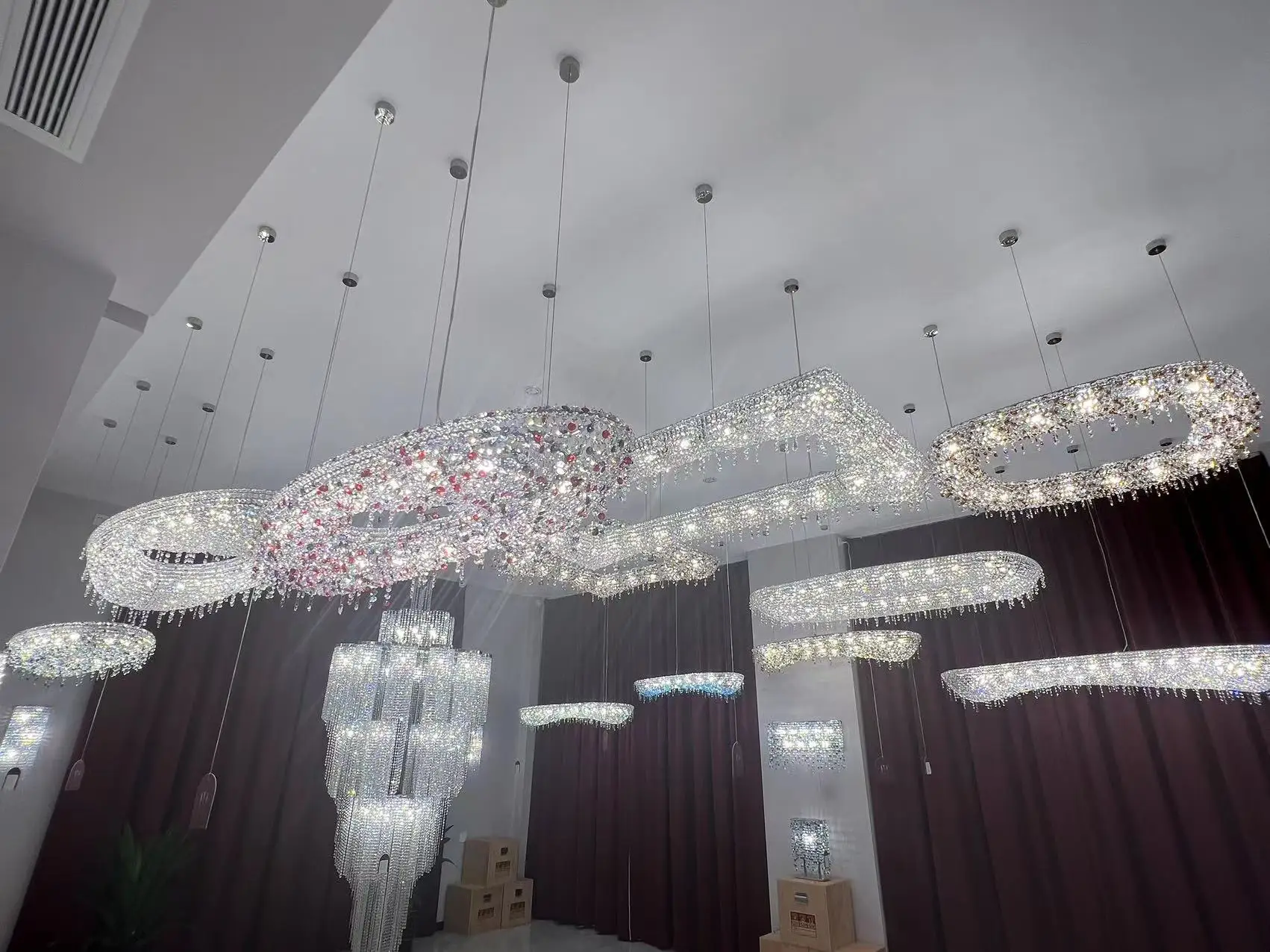 Wedding Hall Chandelier Hotel Hanging Pendant Light Customized Amber Crystal Chandelier Lighting for Lobby