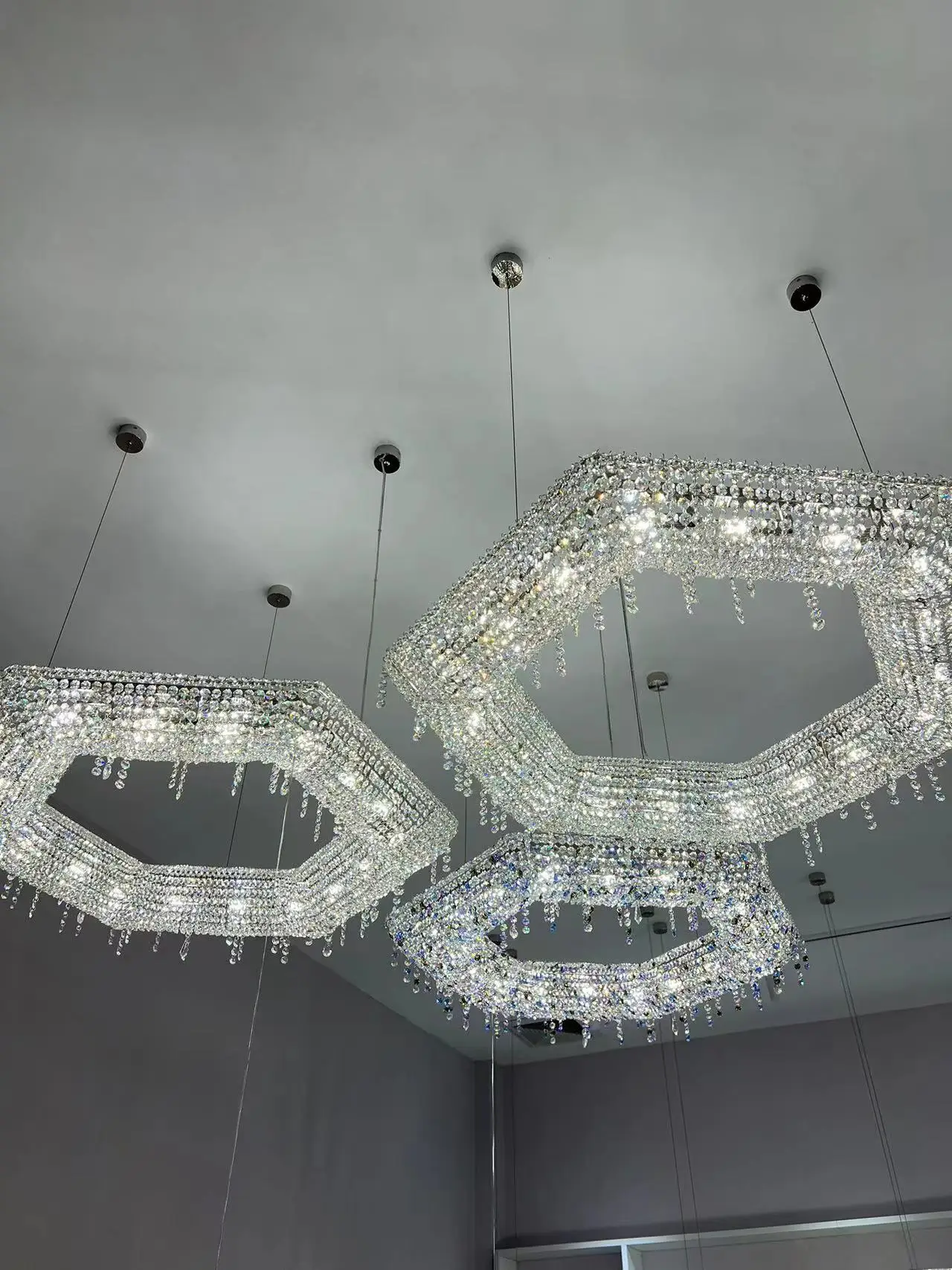Professional Custom Chandelier Hotel Lobby Oval Crystal Chandeliers Ceiling Luxury Asfour Crystal Pendant Lamp Villa