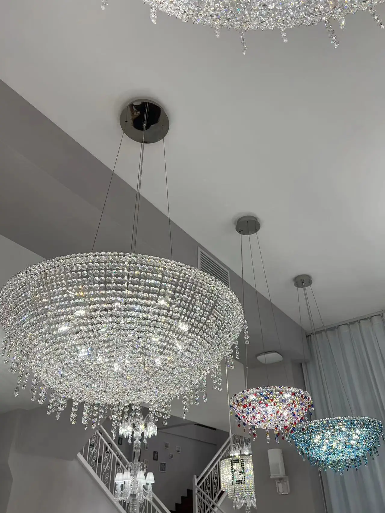 Zeal Lighting Long Stairwell Hanging Pendant Light Staircase Villa Duplex Stair High Ceiling Crystal Chandelier