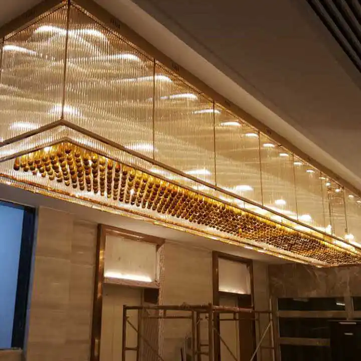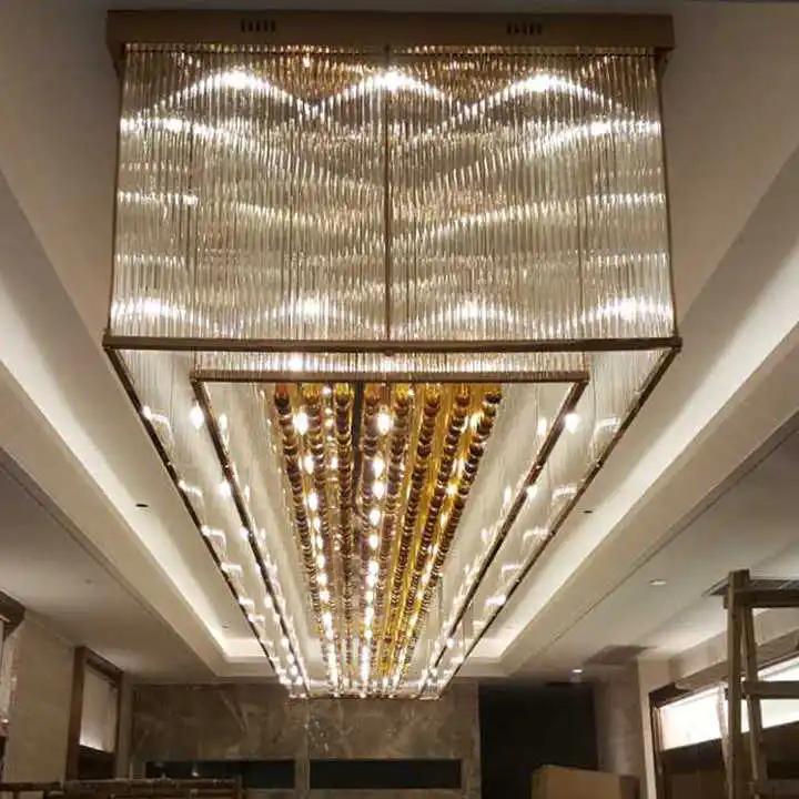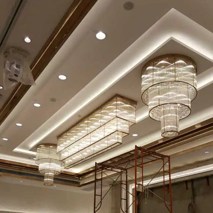 Zeal Lighting Hotel Lobby Hall Decorative Large Hanging Light Customized Long Gold Crystal Elegant Chandelier