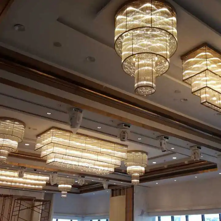 Wedding Hall Chandelier Hotel Hanging Pendant Light Customized Amber Crystal Chandelier Lighting for Lobby