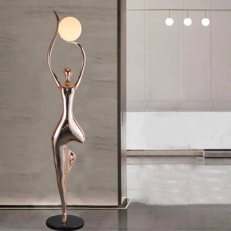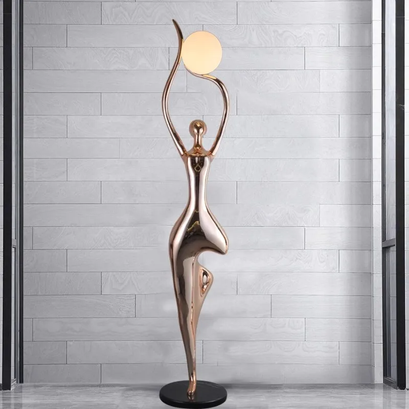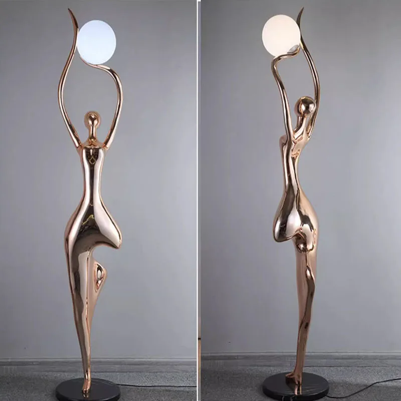 Factory Wholesale European Girl Figure Fiberglass Statue Light High-end Hotel Lobby Vill Display Human Floor Lamp