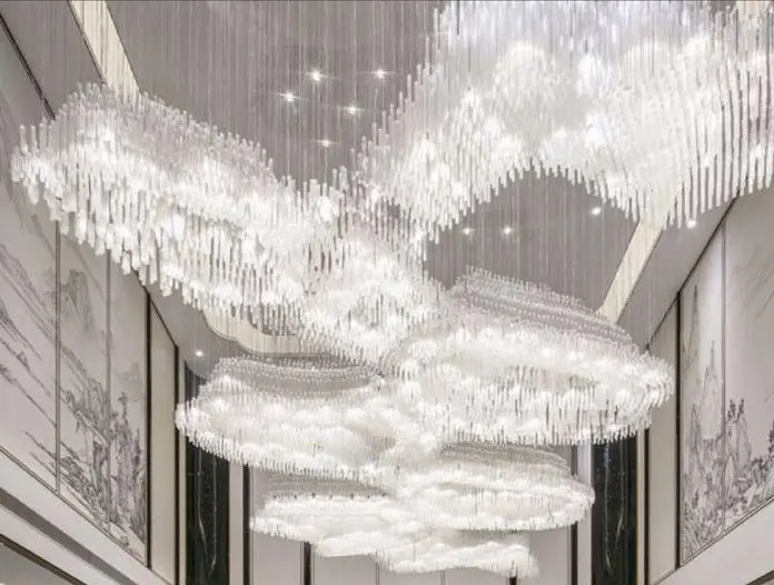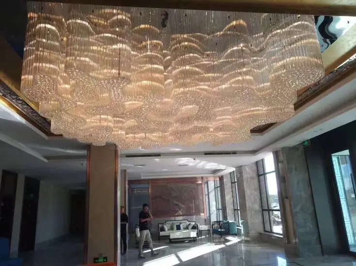 Customized Luxury LED Decoration Big Large Hotel Lobby Banquet Hall Crystal Custom Modern Led K9 Crystal Chandelier Light
