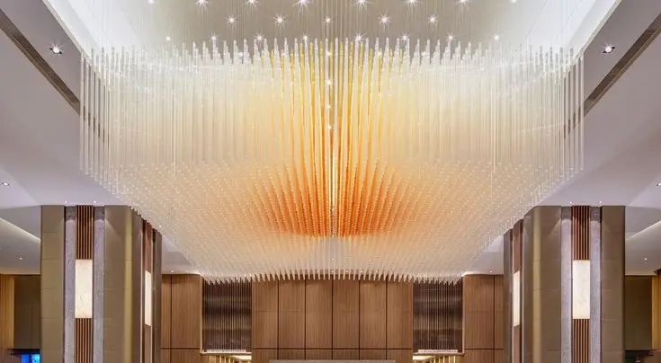 Wedding Hall Chandelier Hotel Hanging Pendant Light Customized Amber Crystal Chandelier Lighting for Lobby