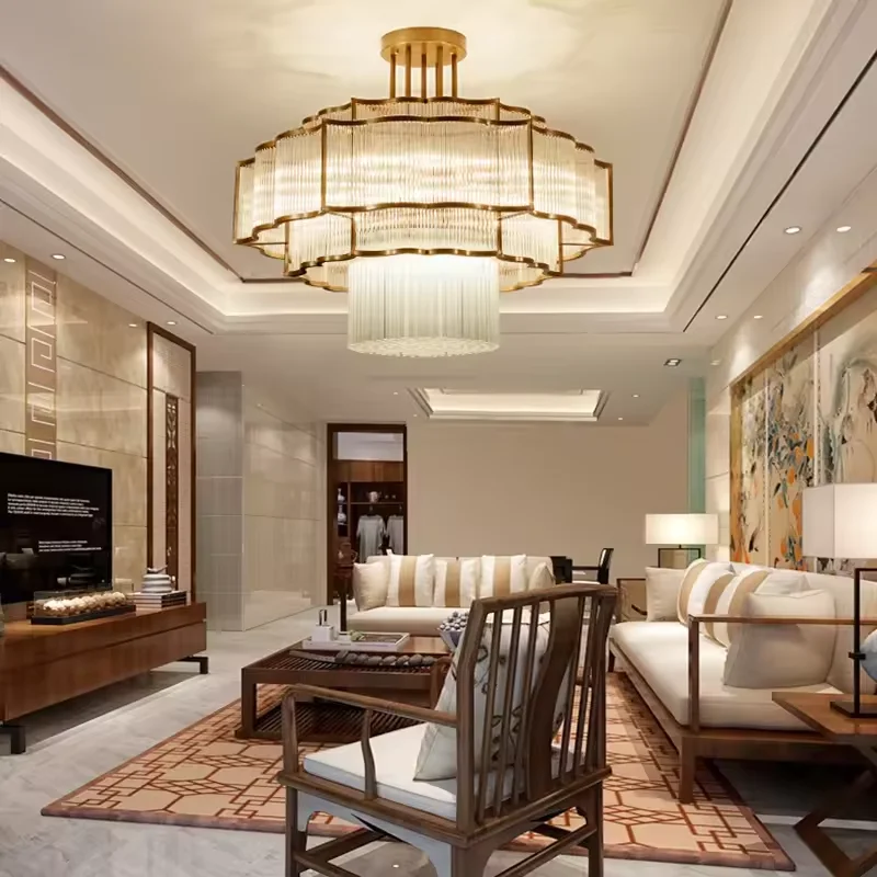 China Style Crystal Pendant Light Restaurant High Ceiling Luxury Modern Black Gold Crystal Chandelier for Living Room