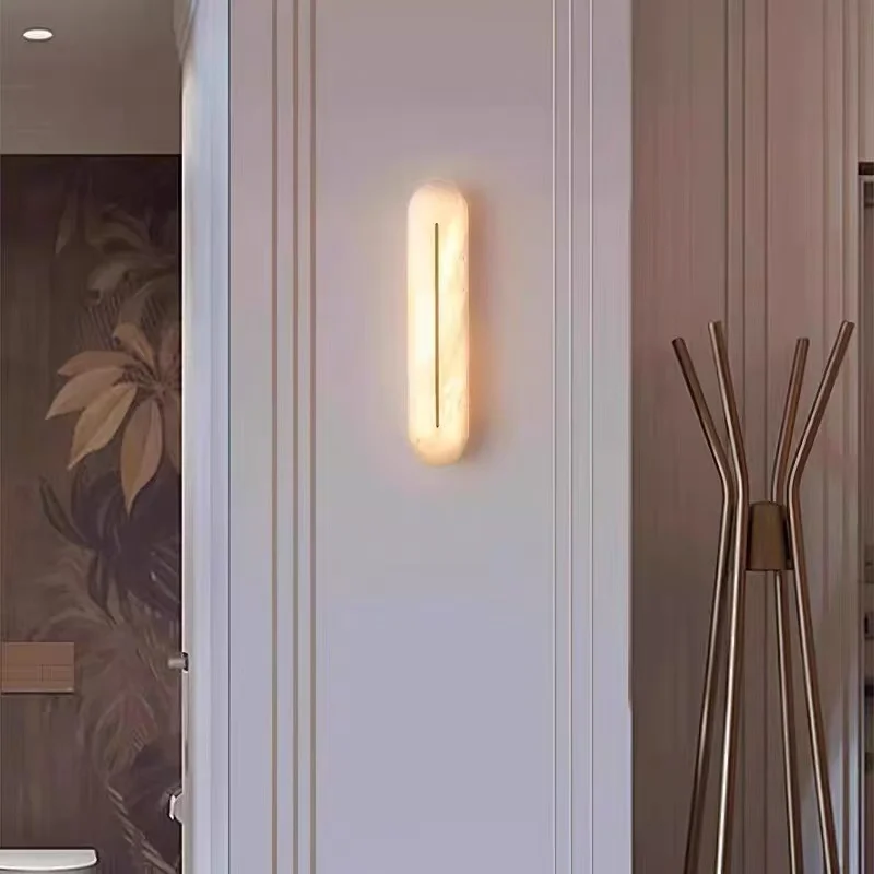 Modern Scandinavian Designer LED Wall Lamp Luxury Marble Accent Long Accessible Bedside for Living Room Bedroom Background Wall