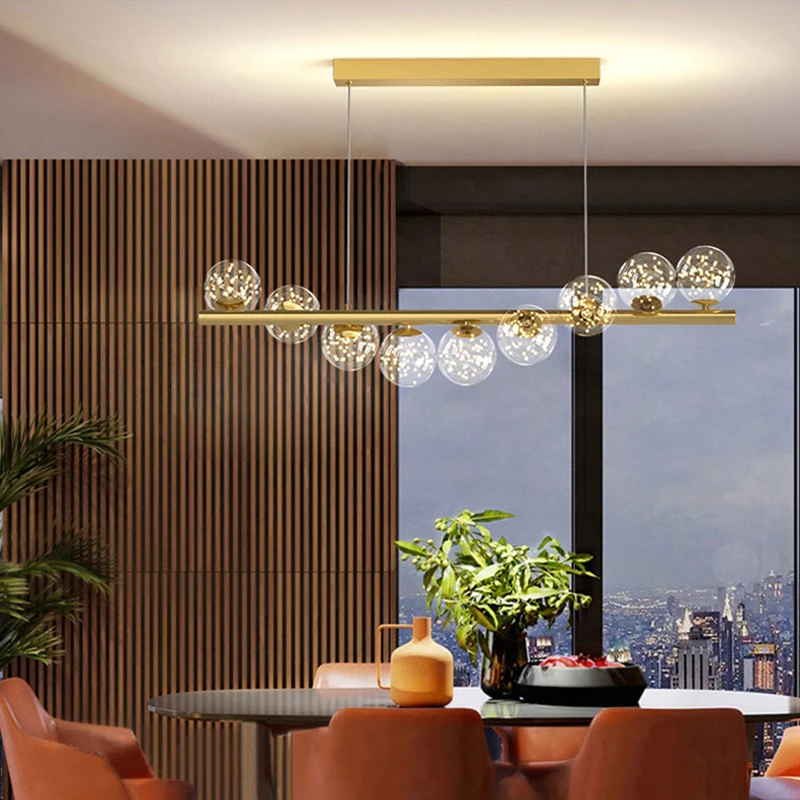 Modern Luxury Minimalist Restaurant Pendant Light Magic Bean Iron Long Strip Bar Lighting Chandeliers Pendant Lights