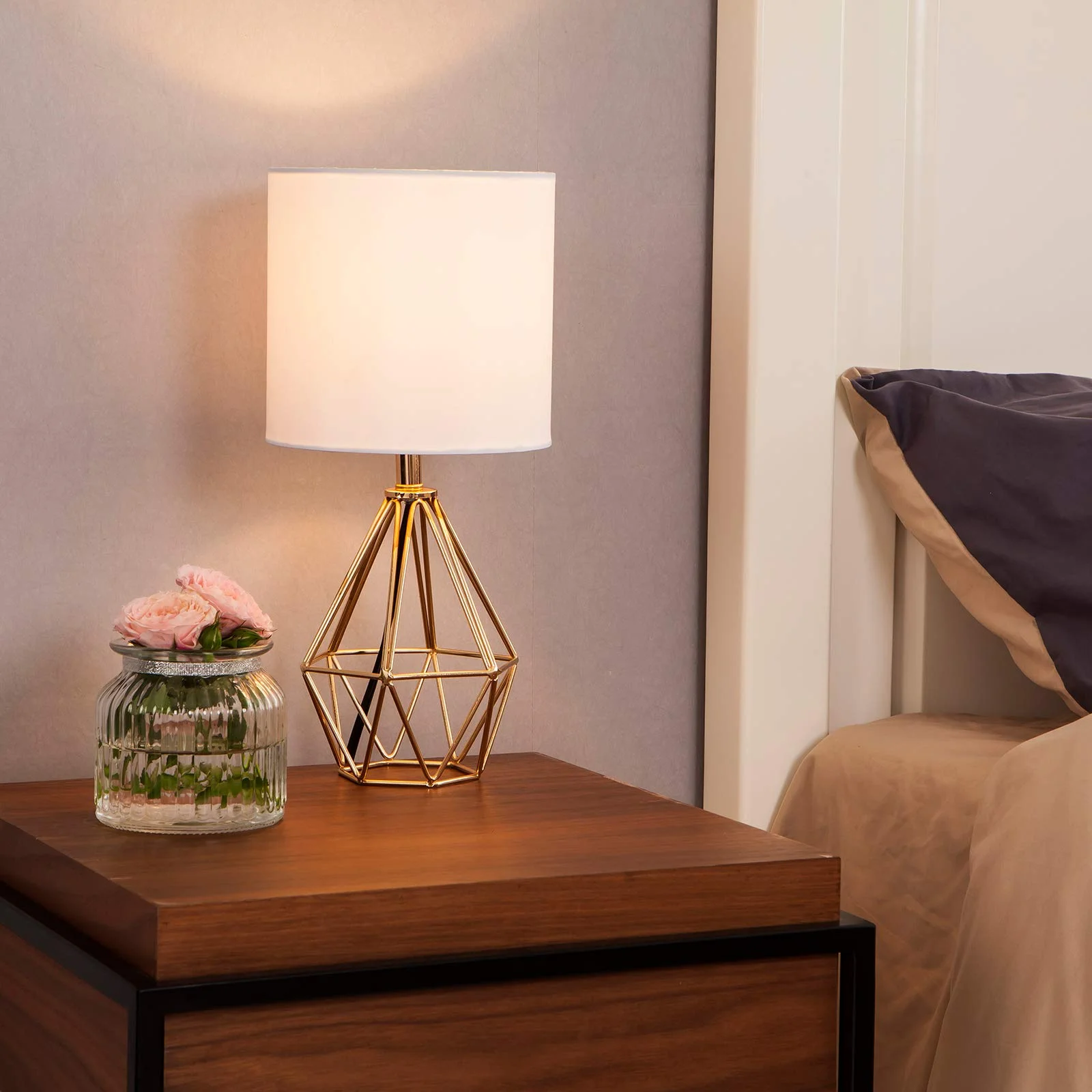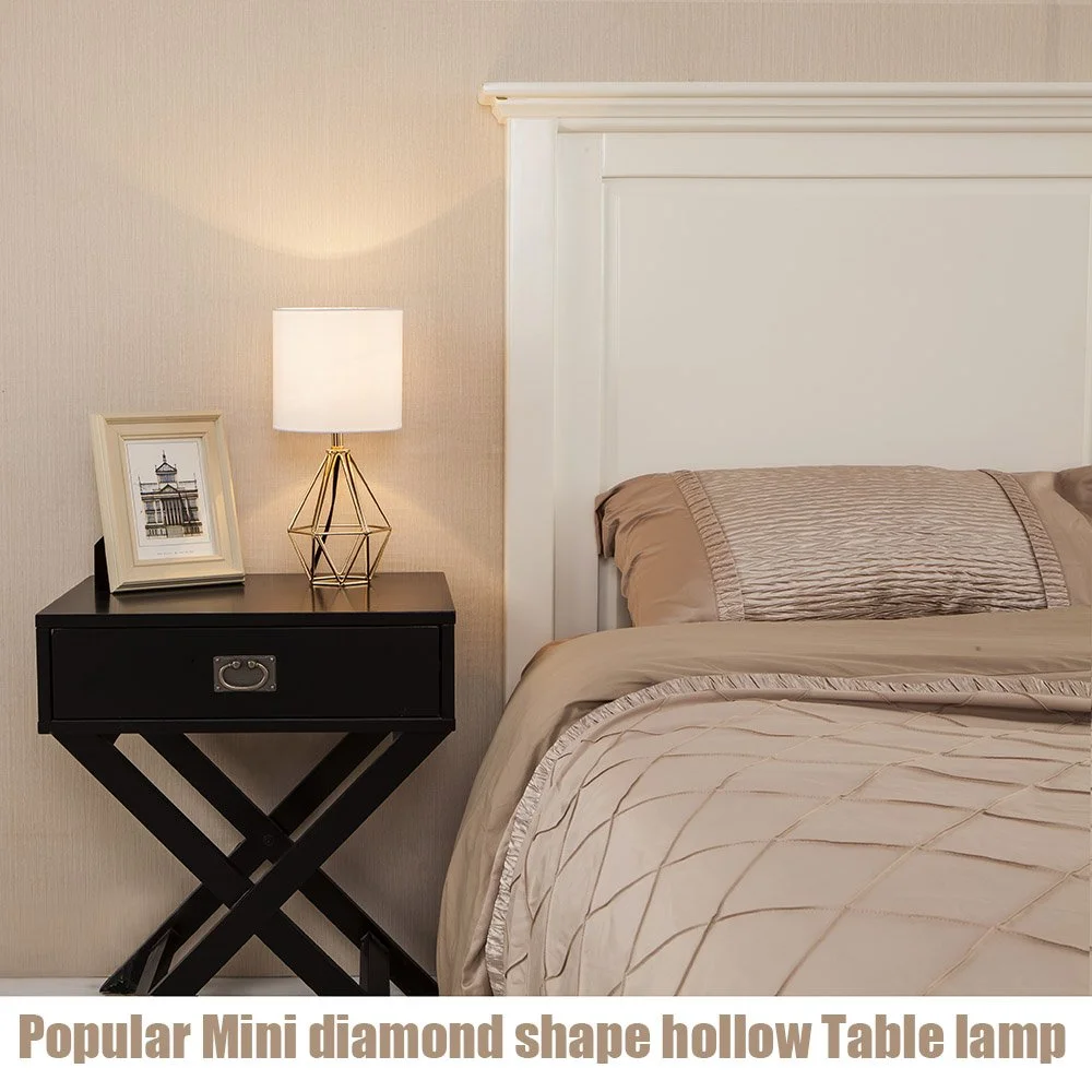 Wholesale Cheap E27 Vintage Indoor Gold Iron White Fabric Table Lamp for Bedroom Bedside
