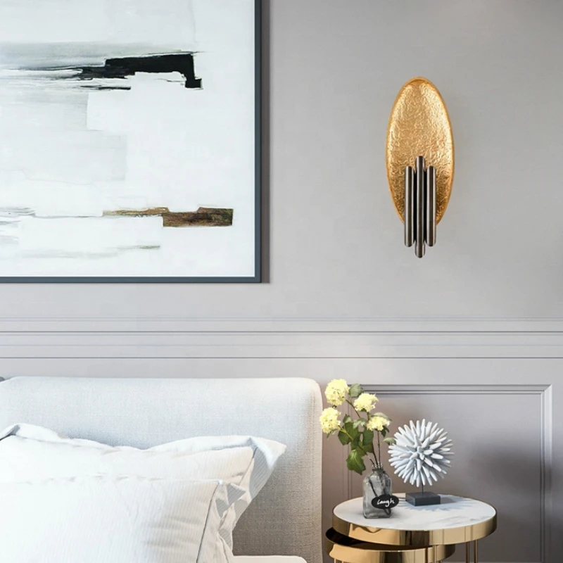 Copper Wall Sconce Lamp Background Natural Marble Indoor Wall Lamps for Home Hotel Bedroom