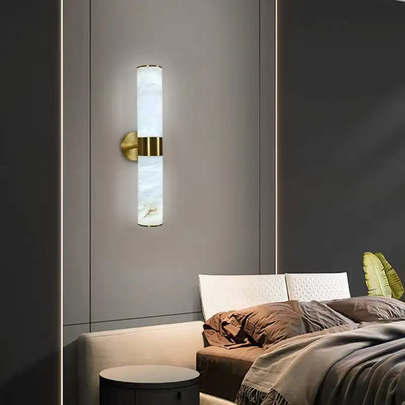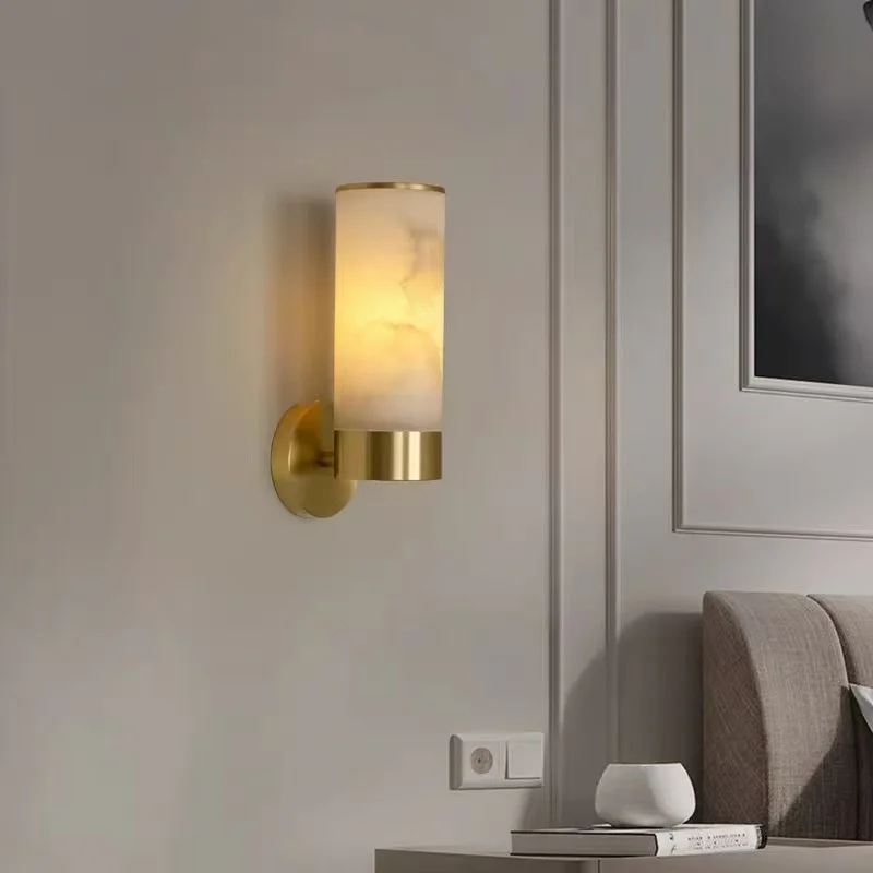 Copper Wall Sconce Lamp Background Natural Marble Indoor Wall Lamps for Home Hotel Bedroom