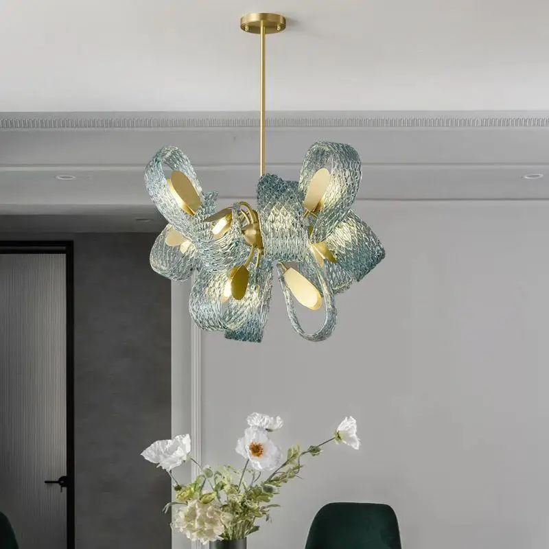 Zeal Lighting Luxury Minimalist Led Indoor Art Glass Metal Pendant Lamps All Copper Chandelier Dining Room