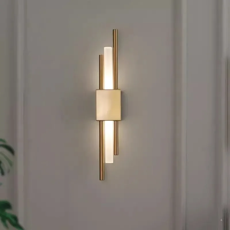 Copper Wall Sconce Lamp Background Natural Marble Indoor Wall Lamps for Home Hotel Bedroom