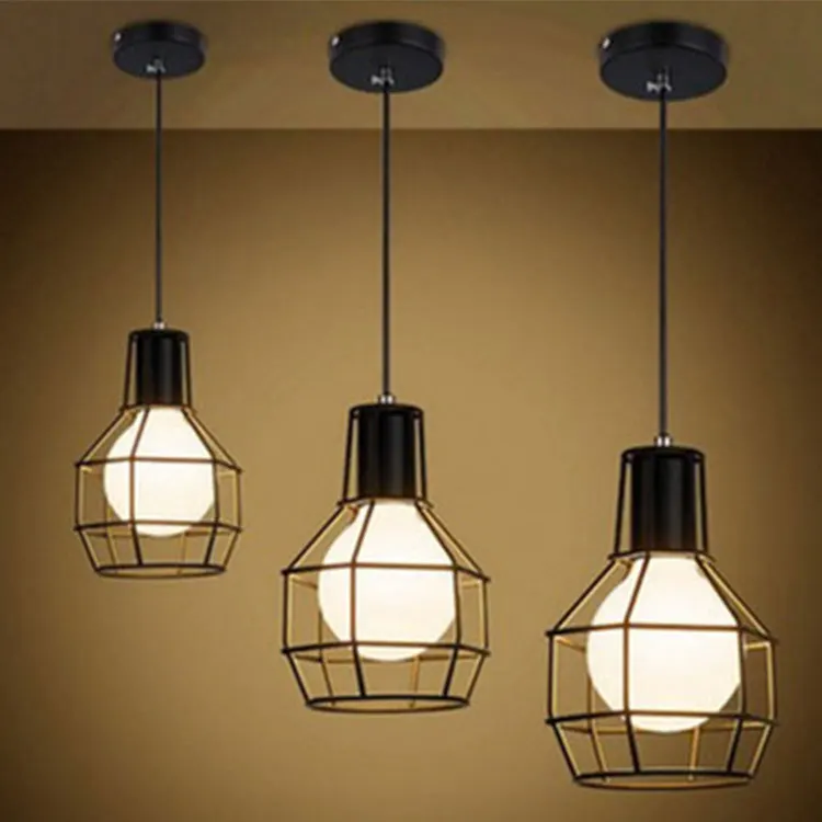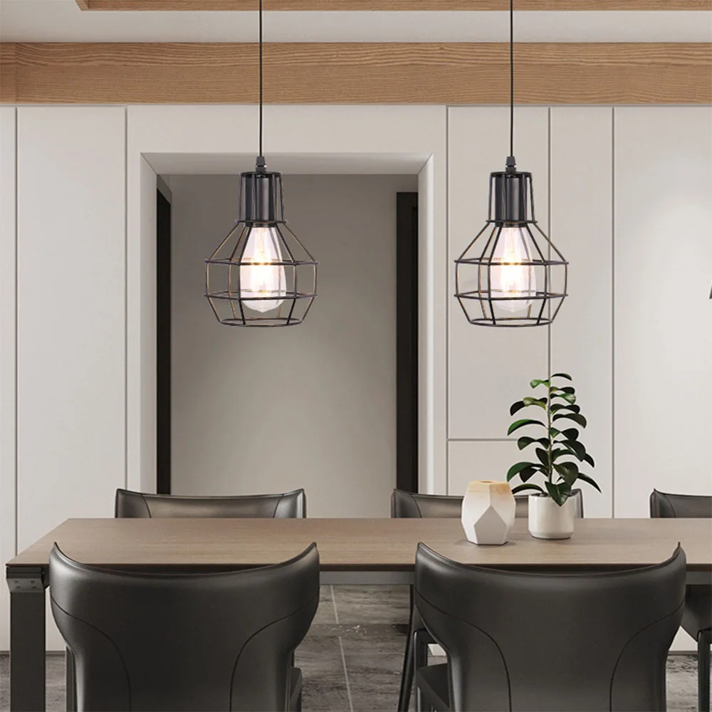 Vintage Pendant Lamp Cage Edison Bulb E27 Hanging Lights Retro Metal Lampshade