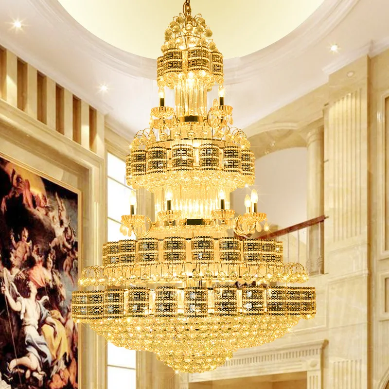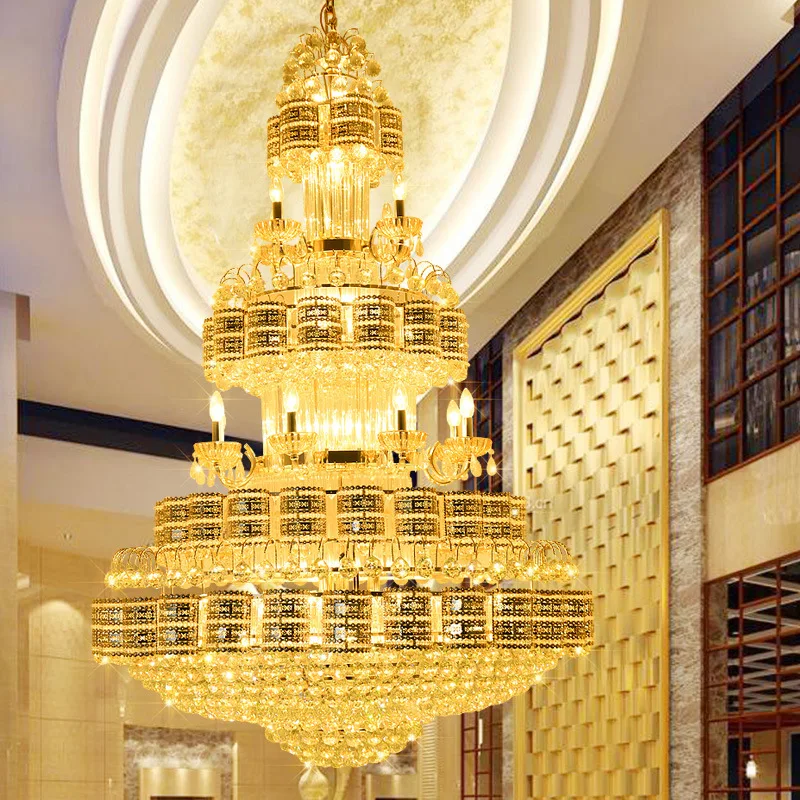 Zeal Lighting Hotel Lobby Hall Decorative Large Hanging Light Customized Long Gold Crystal Elegant Chandelier
