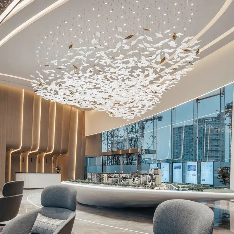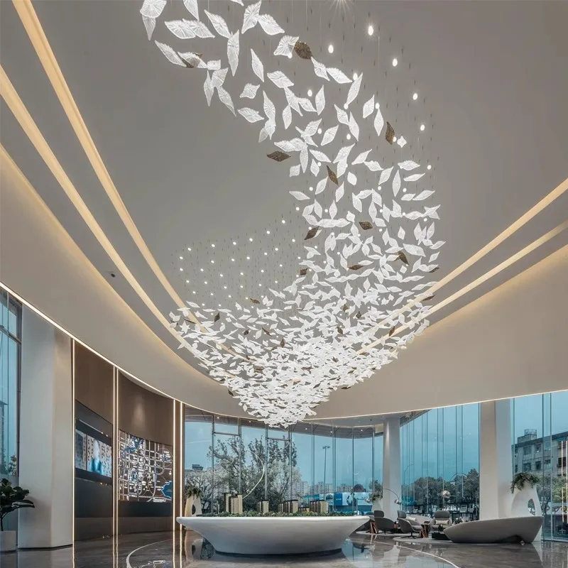 Leaves Shape Modern Hotel Lobby Villa Decoration Pendant Light Custom Large Project Led Glass Chandelier Shopping Mall