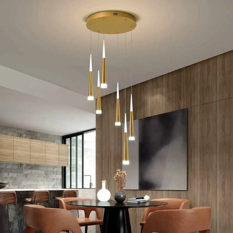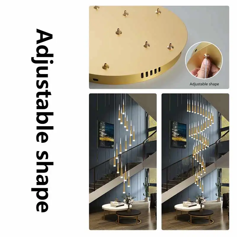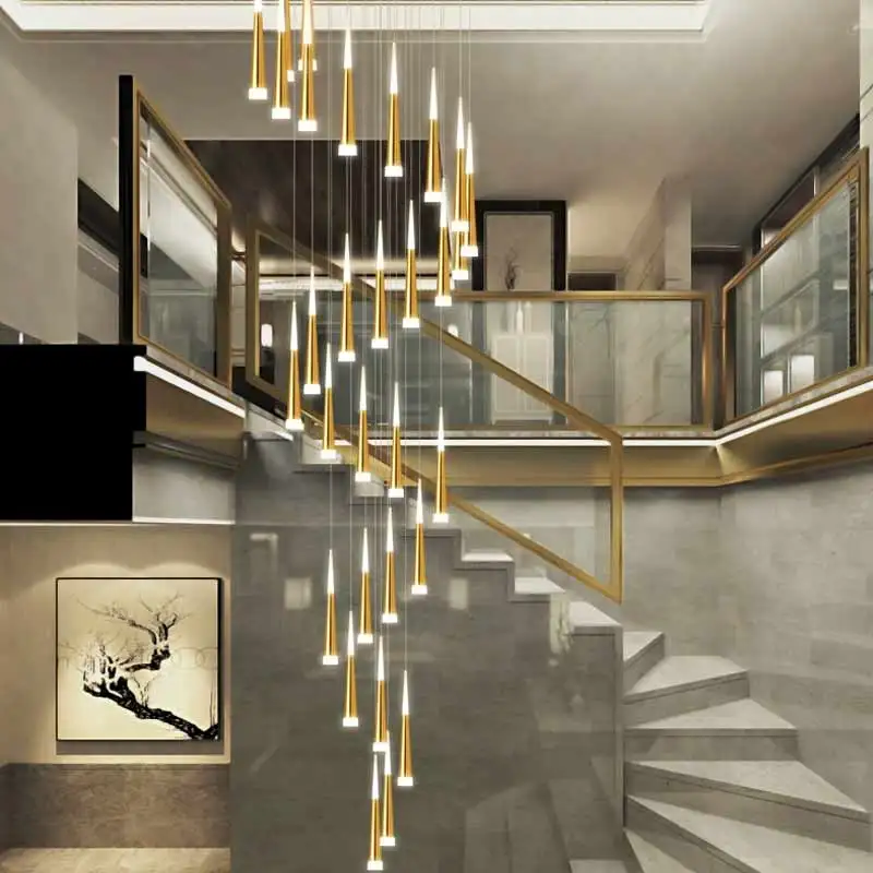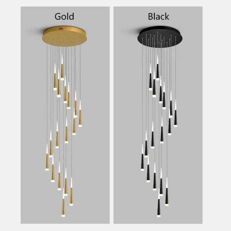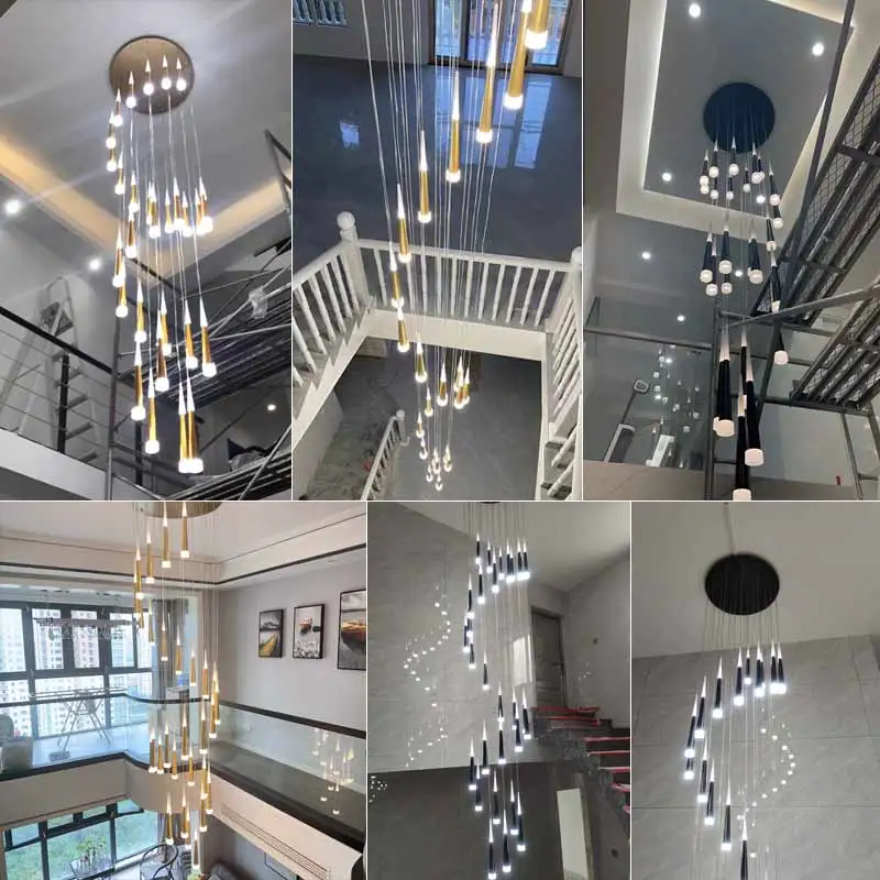 Nordic Decorative Chandelier Luxury High Ceiling Hanging Lamp Black Gold LED Long Chandelier