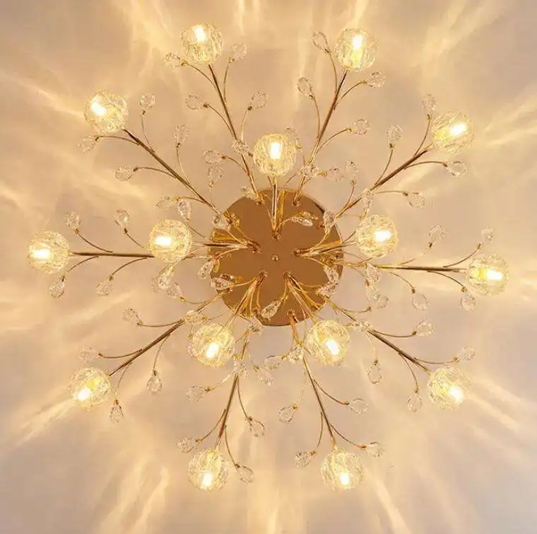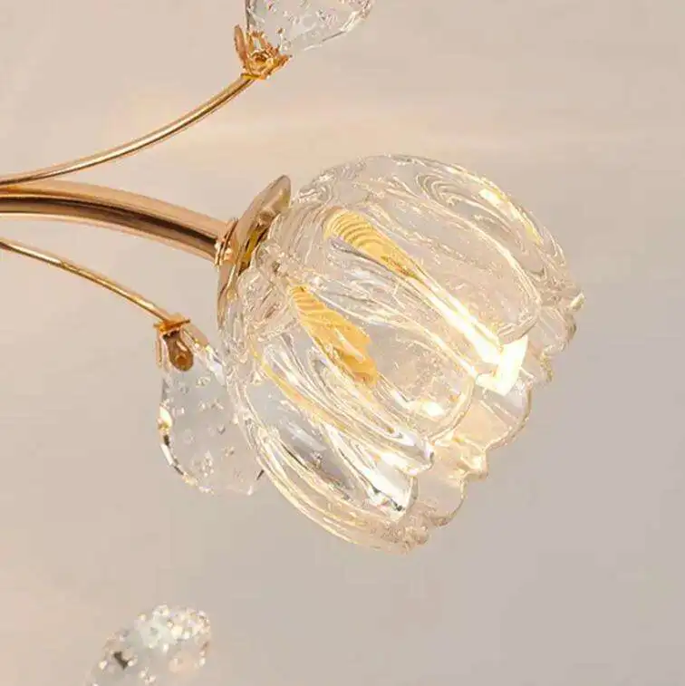 European Style Gold Metal Crystal Chandelier Beautiful Flower Shape Design G9 Bulb Ceiling Lamp for Dining Room