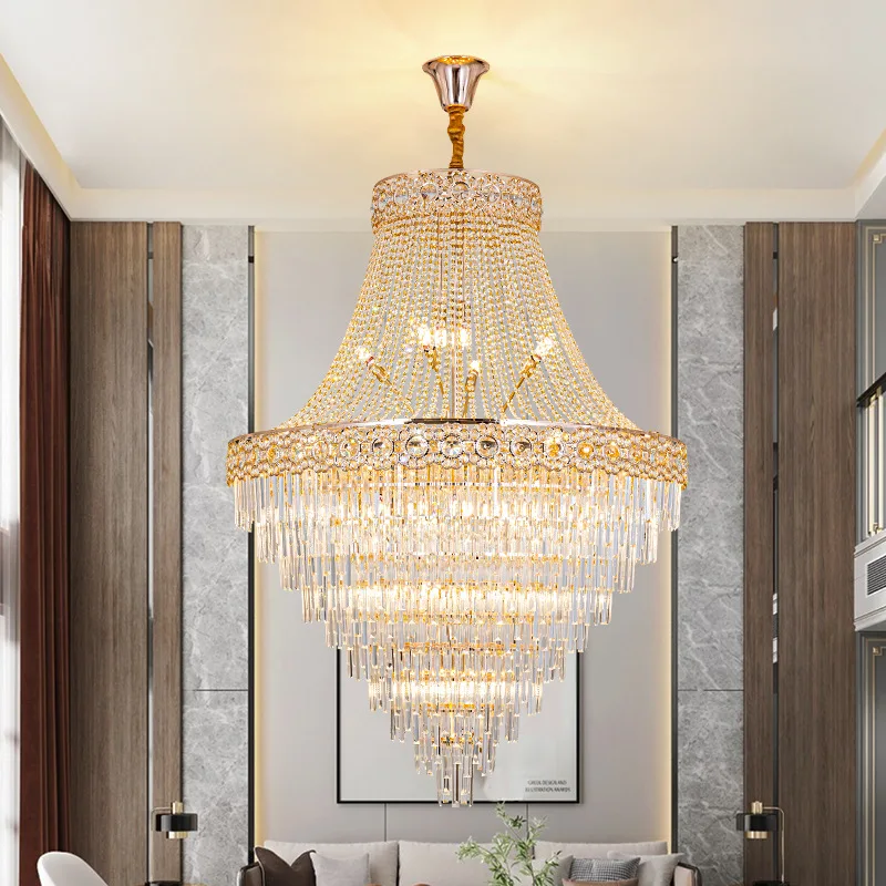 Zeal Lighting Hotel Lobby Hall Decorative Large Hanging Light Customized Long Gold Crystal Elegant Chandelier