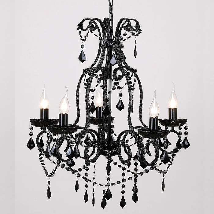 Maria Teresha 5 Arm Black Restaurant Living Room Hanging Chandelier & Pendant Lights Crystal