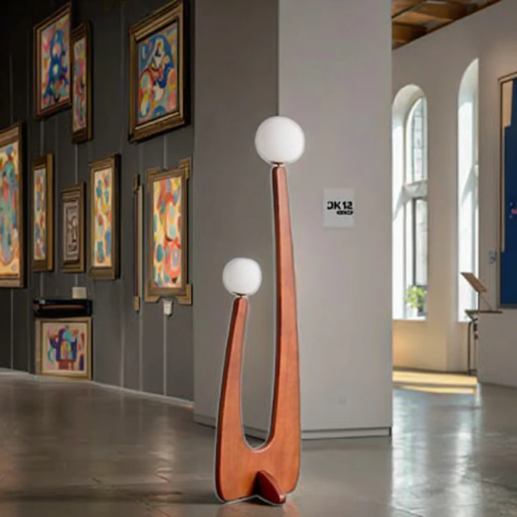 Nordic Modern Bedroom Study Art Black Walnut Solid Wood Floor Lamp with RGB LED G9 Base Lighted Brass and Metal Shad