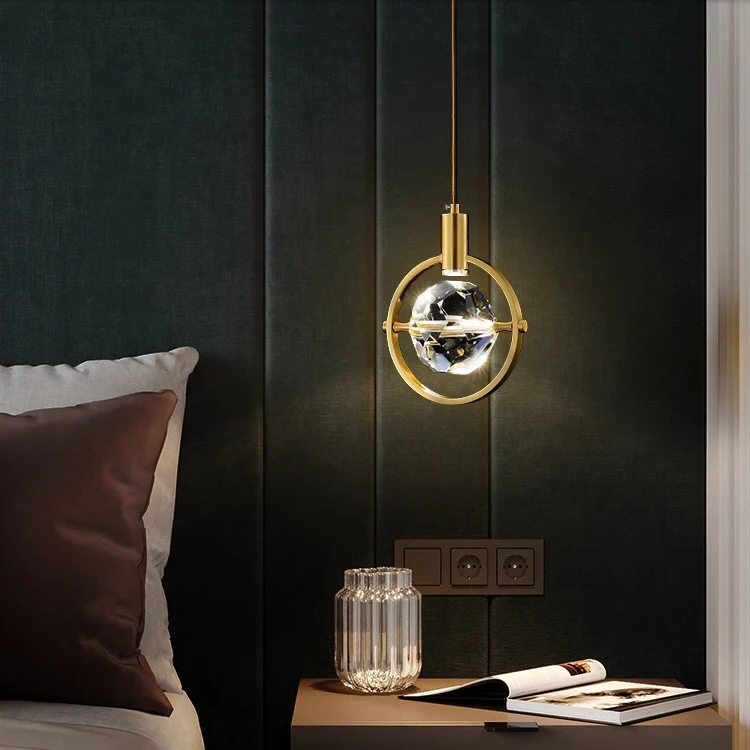 Morden Luxury Design Led Ball Chandelier Hanging Bedroom Crystal Lamps Metal Chandelier Pendant Light for Bedside Dining Table