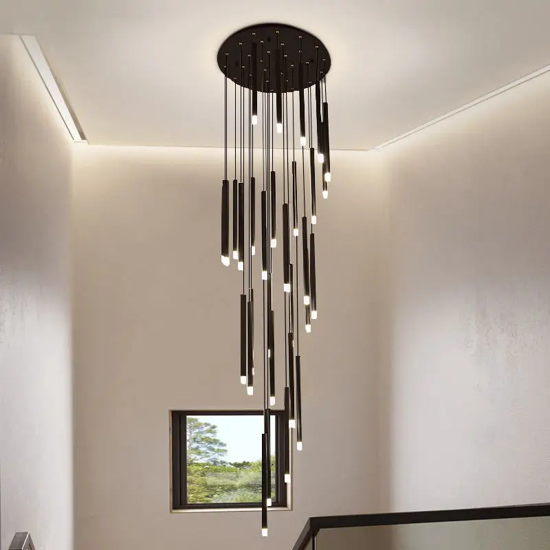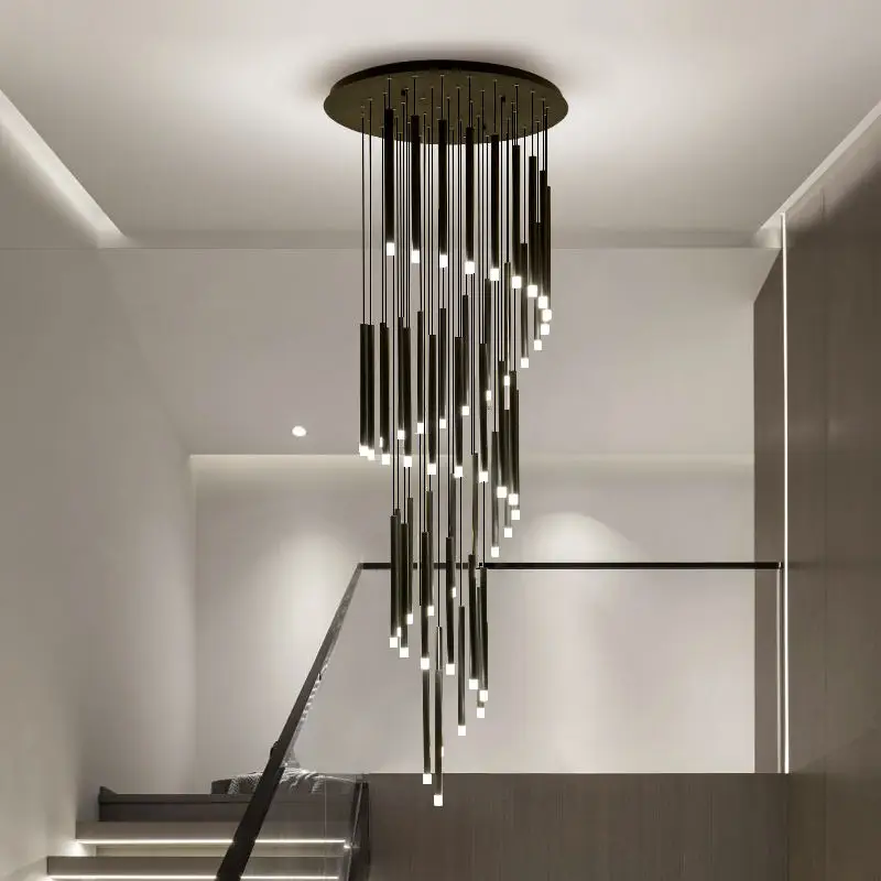 Zeal Lighting Long Stairwell Hanging Pendant Light Staircase Villa Duplex Stair High Ceiling Crystal Chandelier