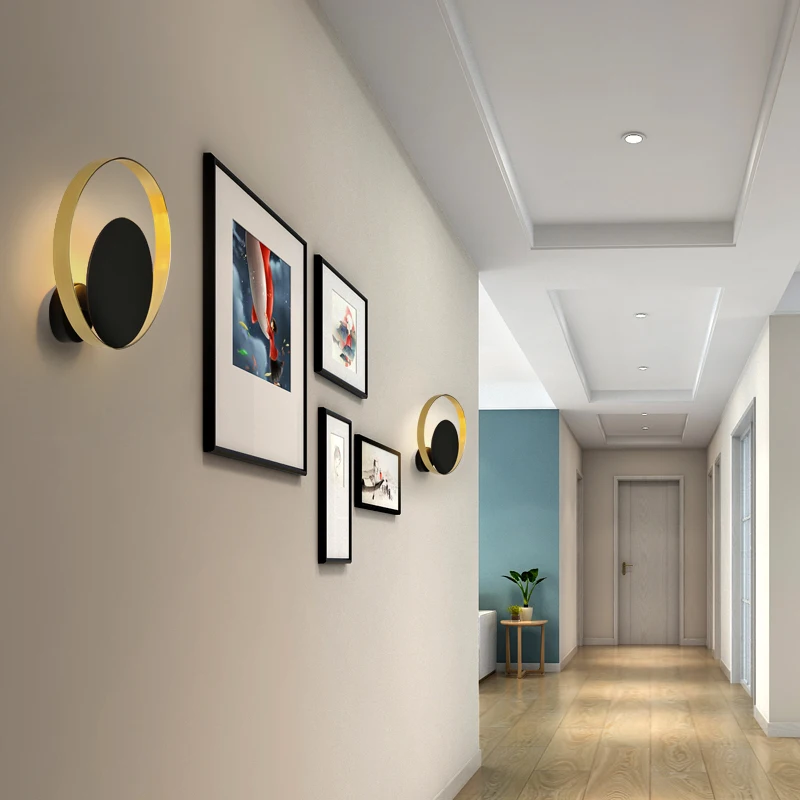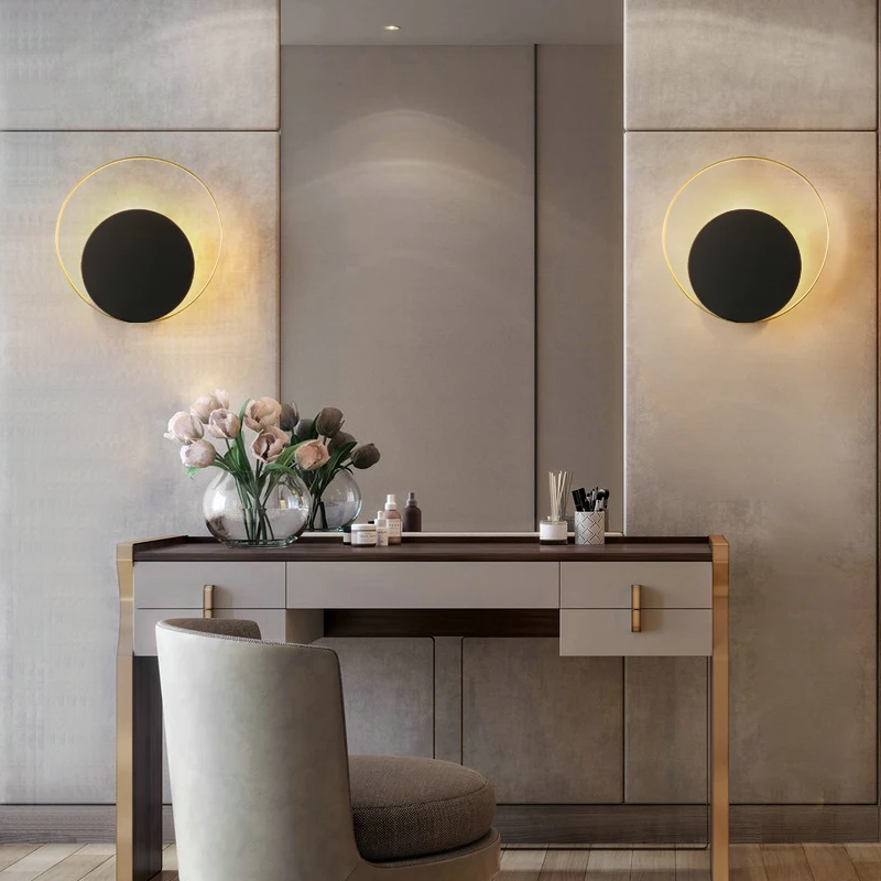 Modern Circular Black LED Indoor Wall Lights Iron Body Corridor Bedroom Bathroom Vanity Fixture Bedside Lamps for Living Room