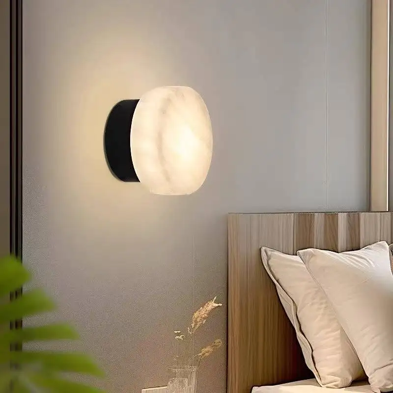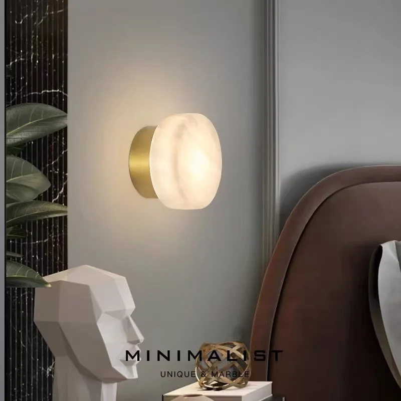 Modern High-End Creative Natural Marble Wall Lamp for Bedroom and Living Room for Hotel Corridors Stairs and Aisles