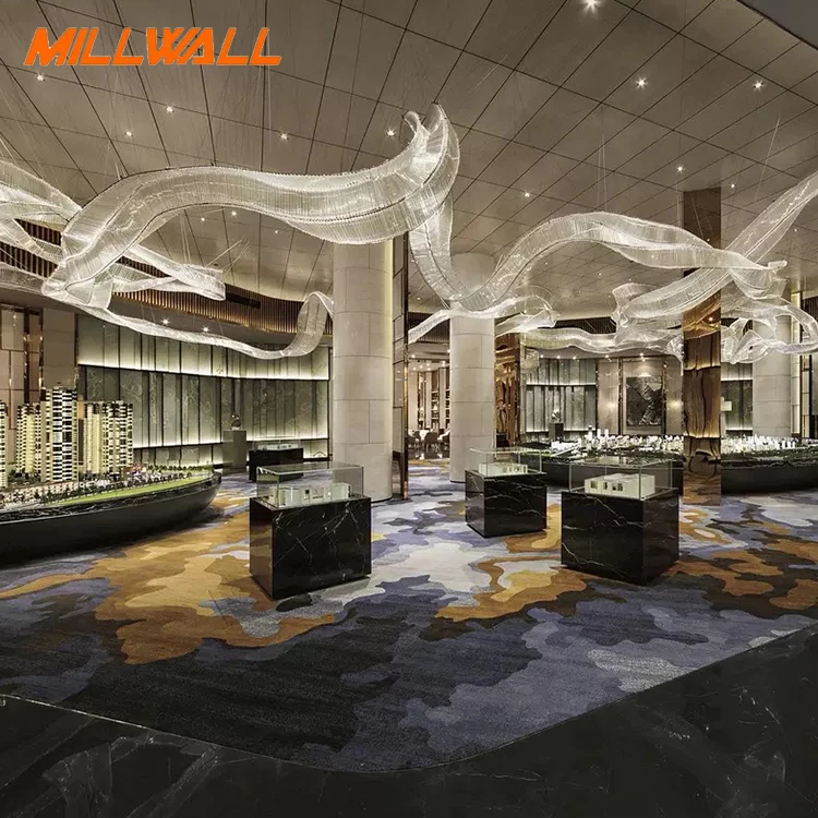 Newly Design Restaurant Lampen Custom Art Decoration Modern Ribbon Pendant Light Large Hotel Clear Crystal Ceiling Chandelier
