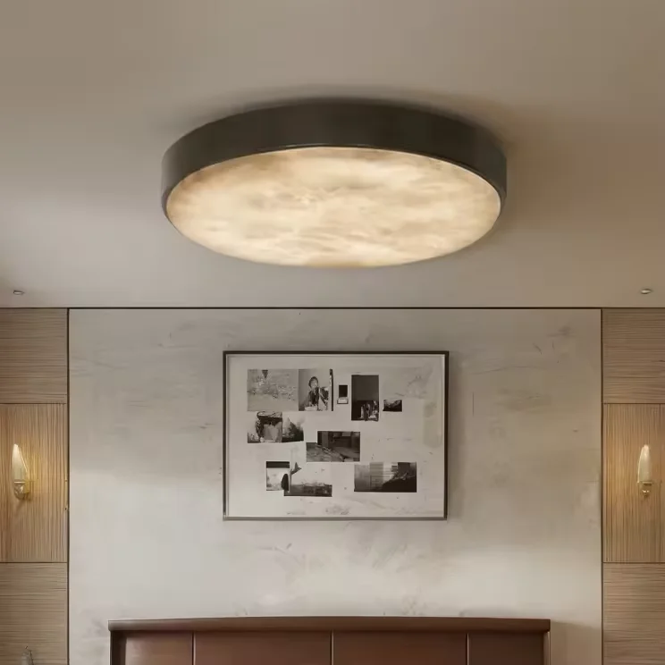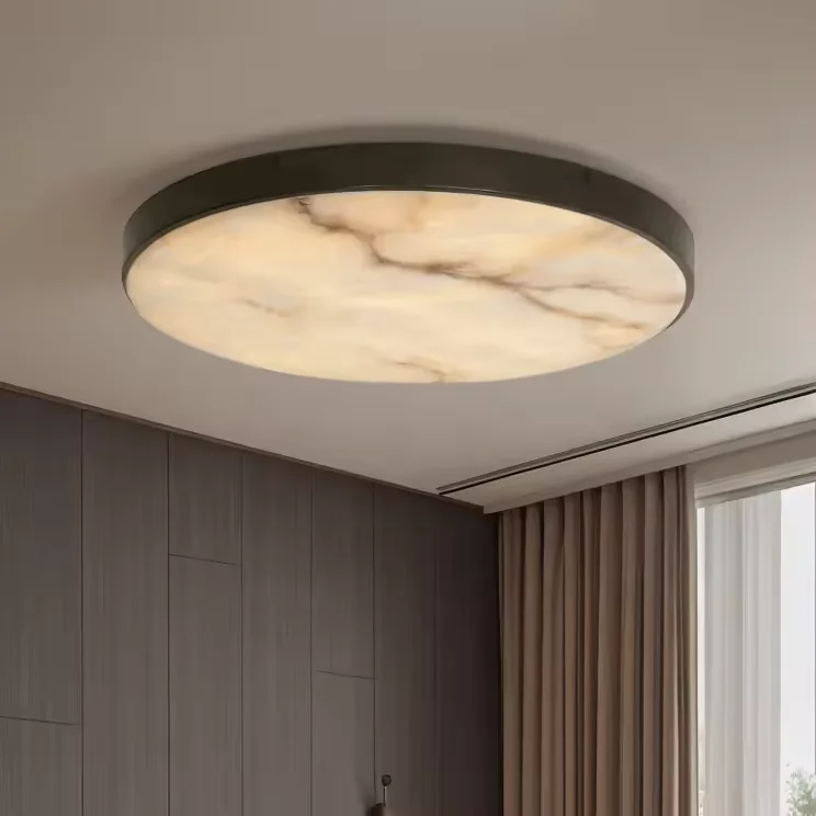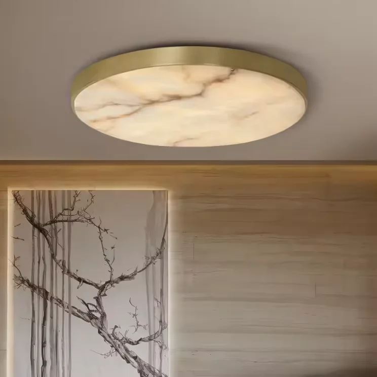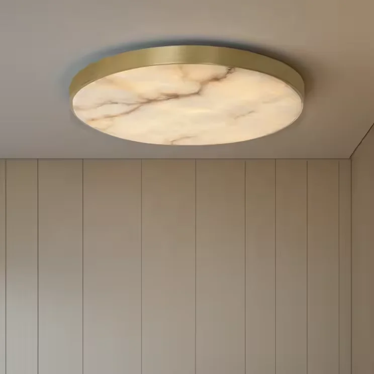 Zeal Lighting Surface Flush Mount Brass Lamp Minimalist Marble Alabaster Flush Ceiling Light for Bedroom Living Room